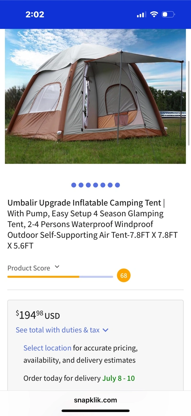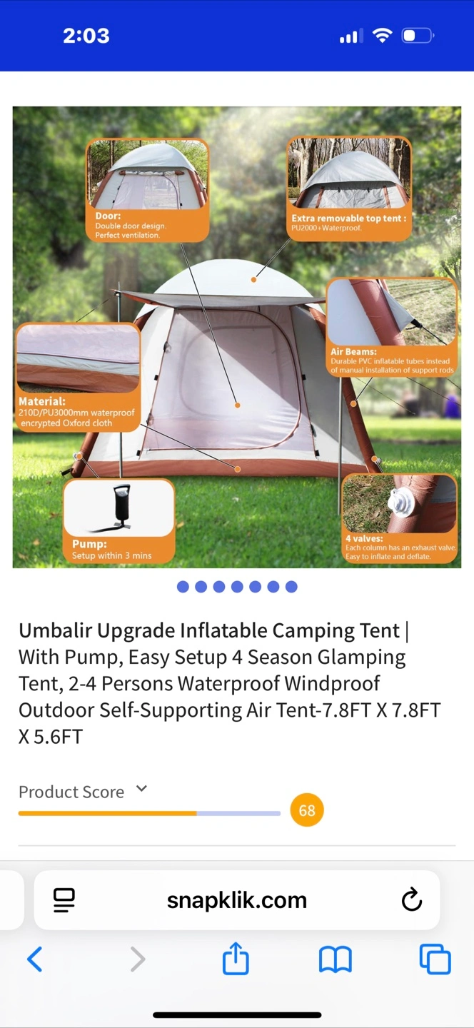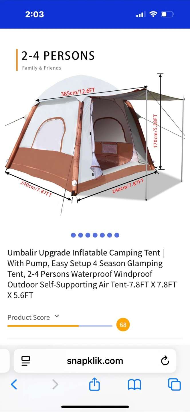 Looking to sell an Umbalir inflatable camping tent! It's designed to comfortably sleep 2-4 people. The tent features: