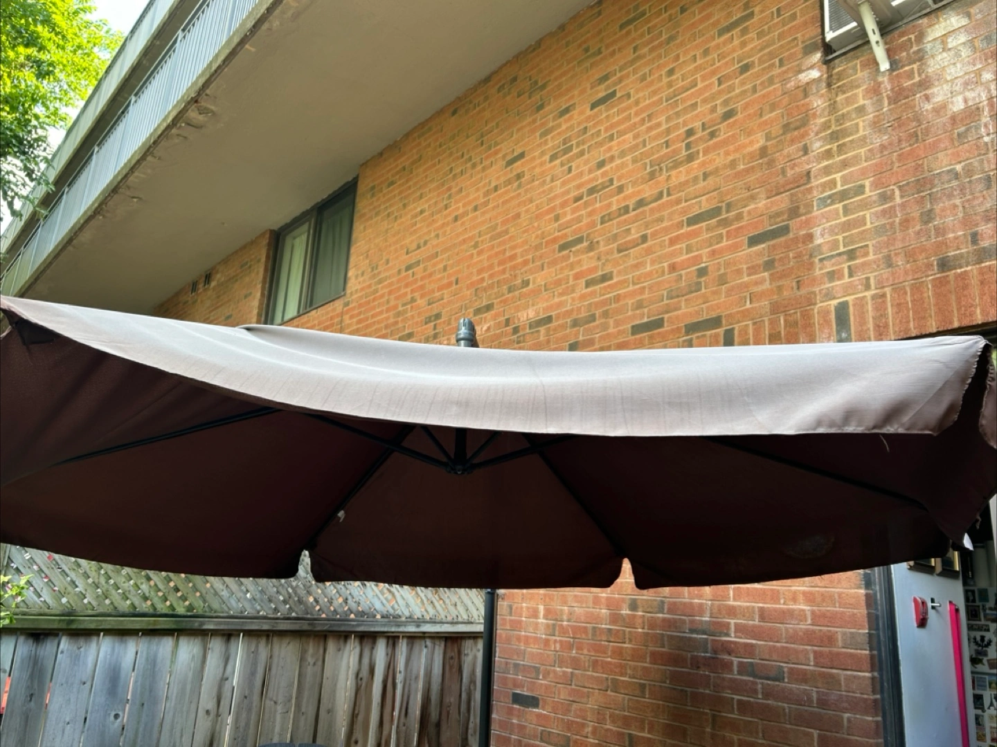 Selling a brown outdoor patio umbrella. It's in good condition and ready to provide some shade for your outdoor space. 10 foot span.