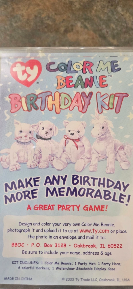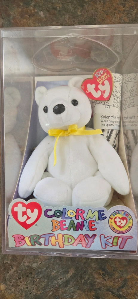 311Selling a Ty Color Me Beanie Birthday Kit! It comes with a white bear and markers to colour it in. A fun activity for kids!
