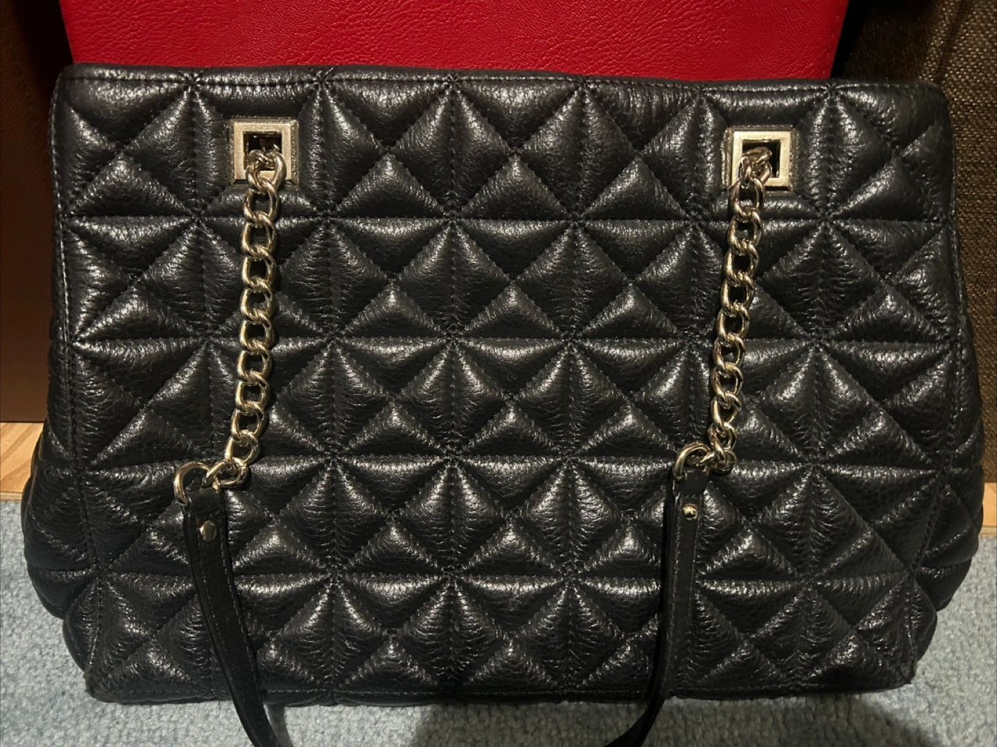 Selling a stylish Kate Spade tote bag! It features a beautiful quilted design in black leather. It's perfect for everyday use and adding a touch of elegance to your outfit