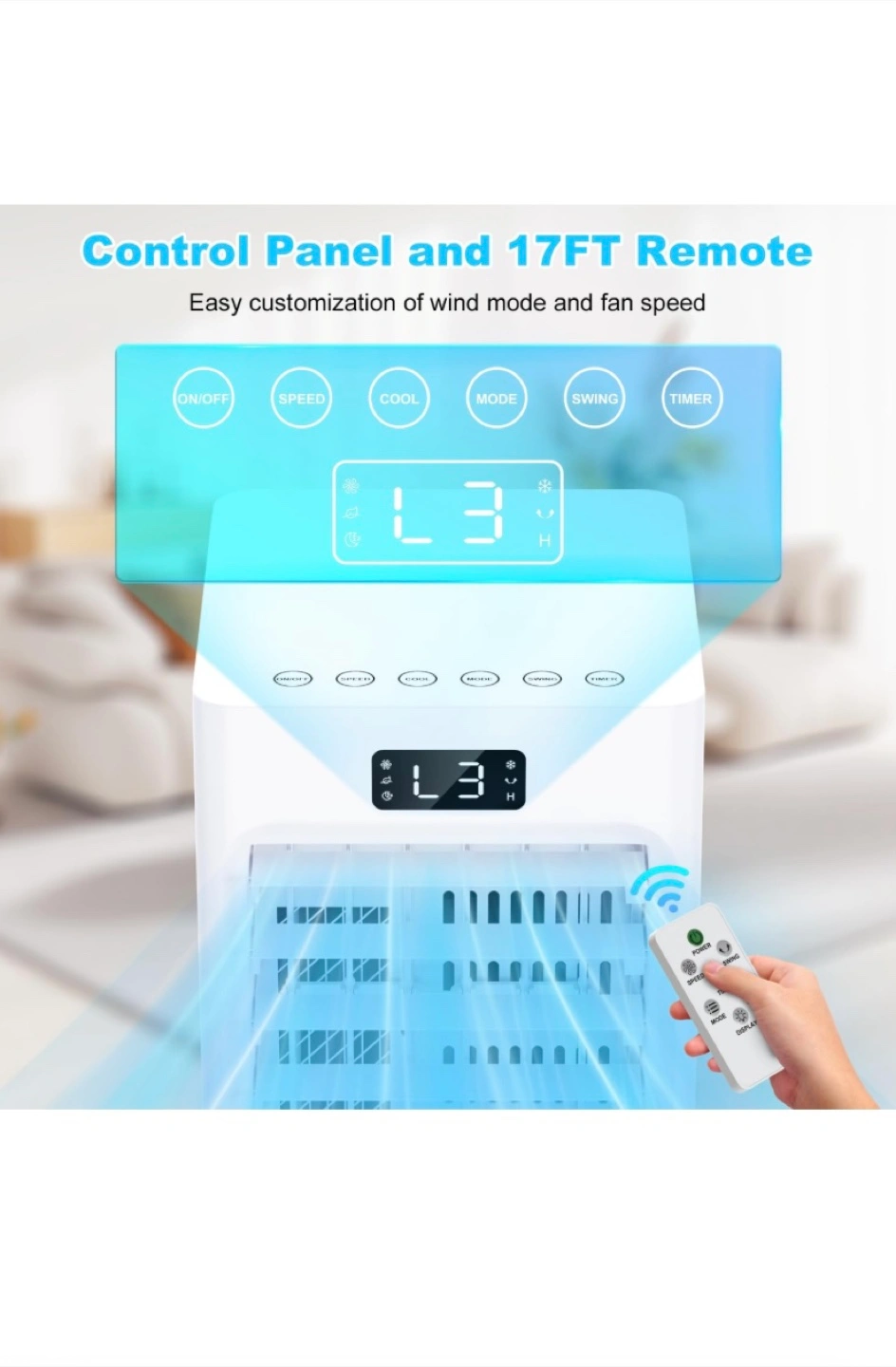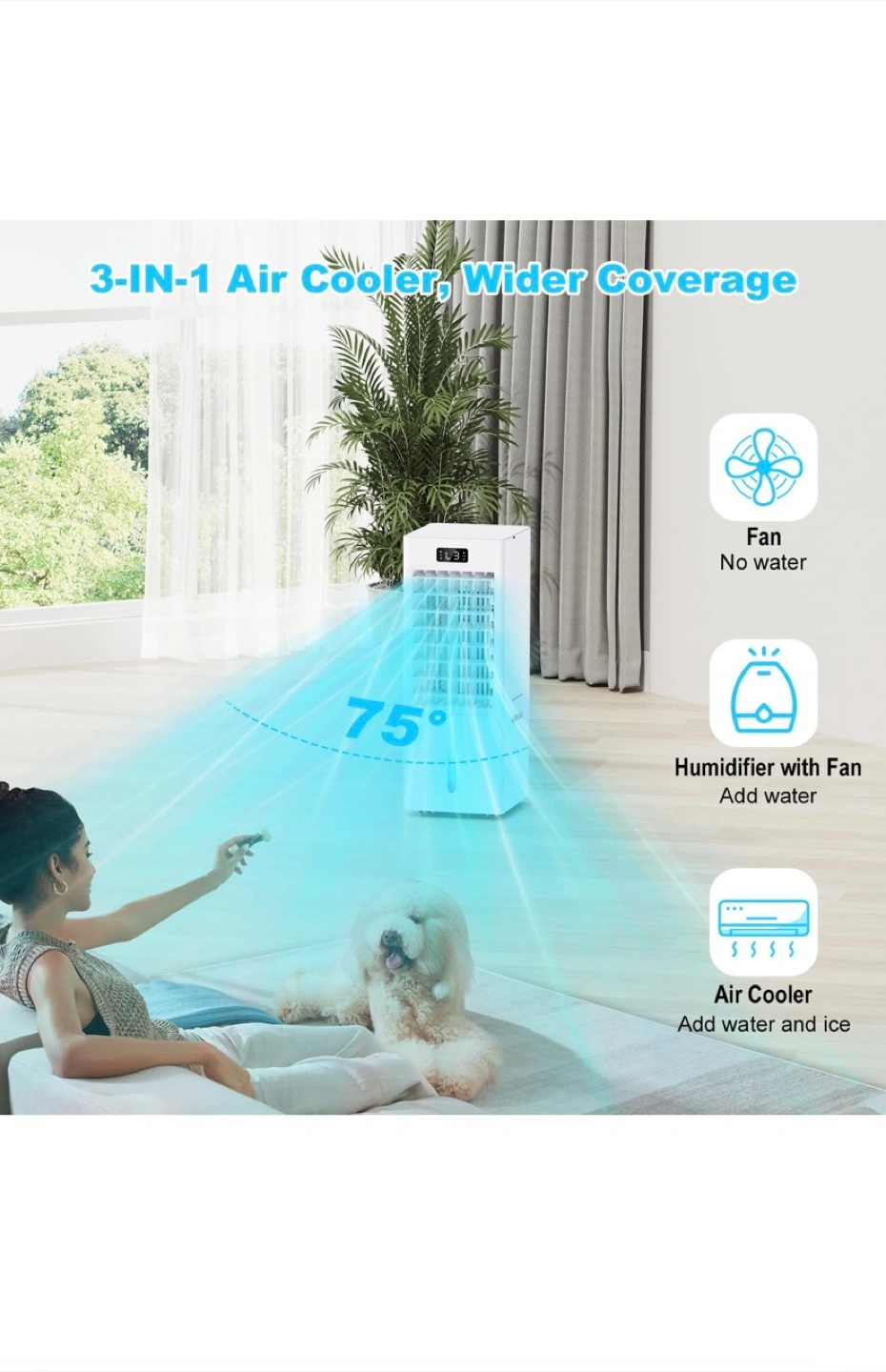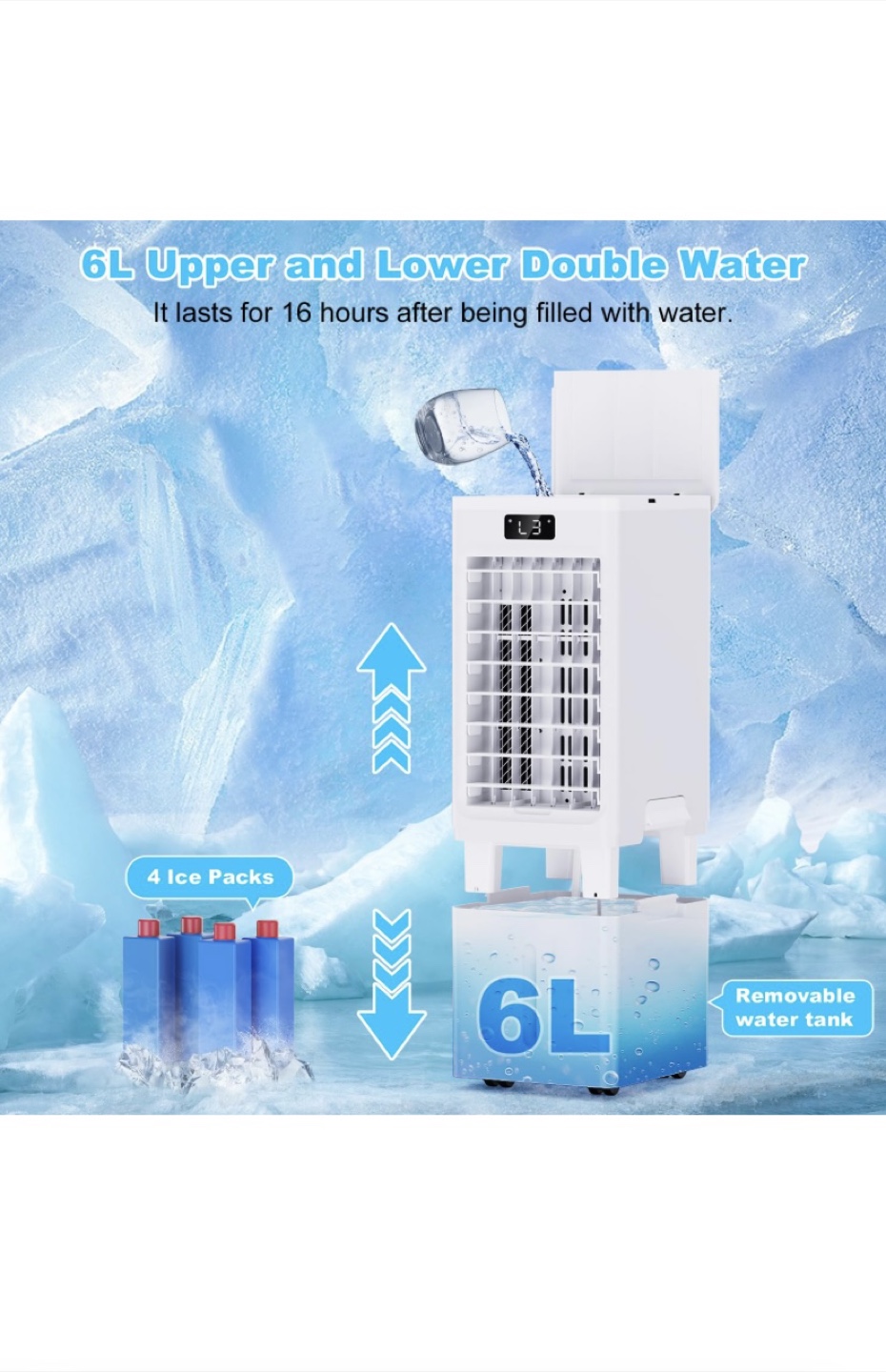 3-in-1 Portable Air Cooler, 6000ML Water Tank with 4 Ice Packs, 3 Speeds & Cooling Modes, 12H Timer, 75° Oscillation, Quiet Sleep Mode, Portable AC Unit with Remote Control