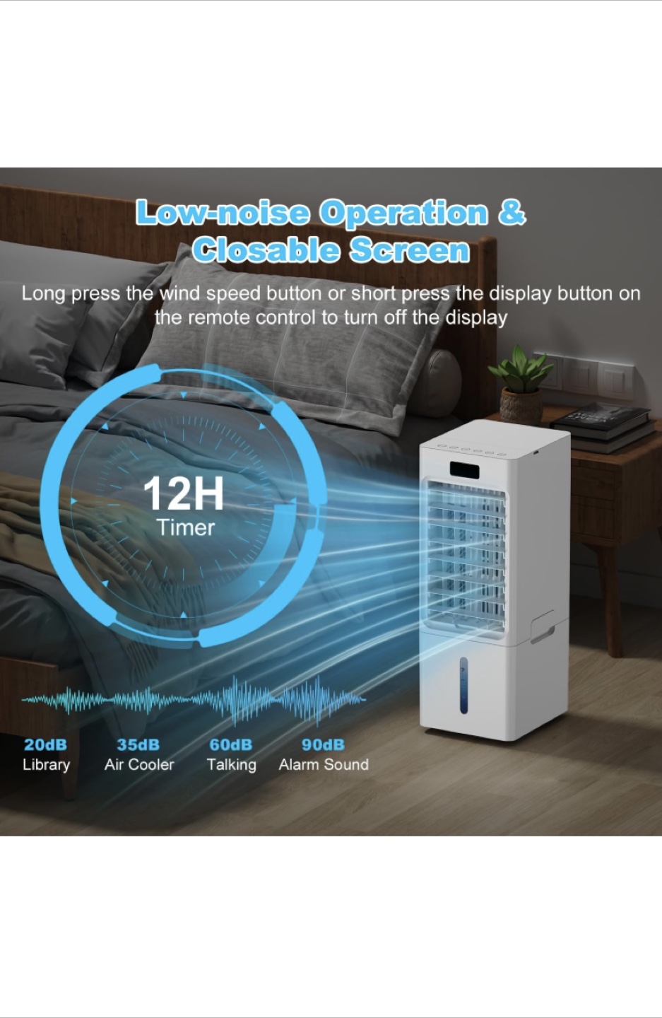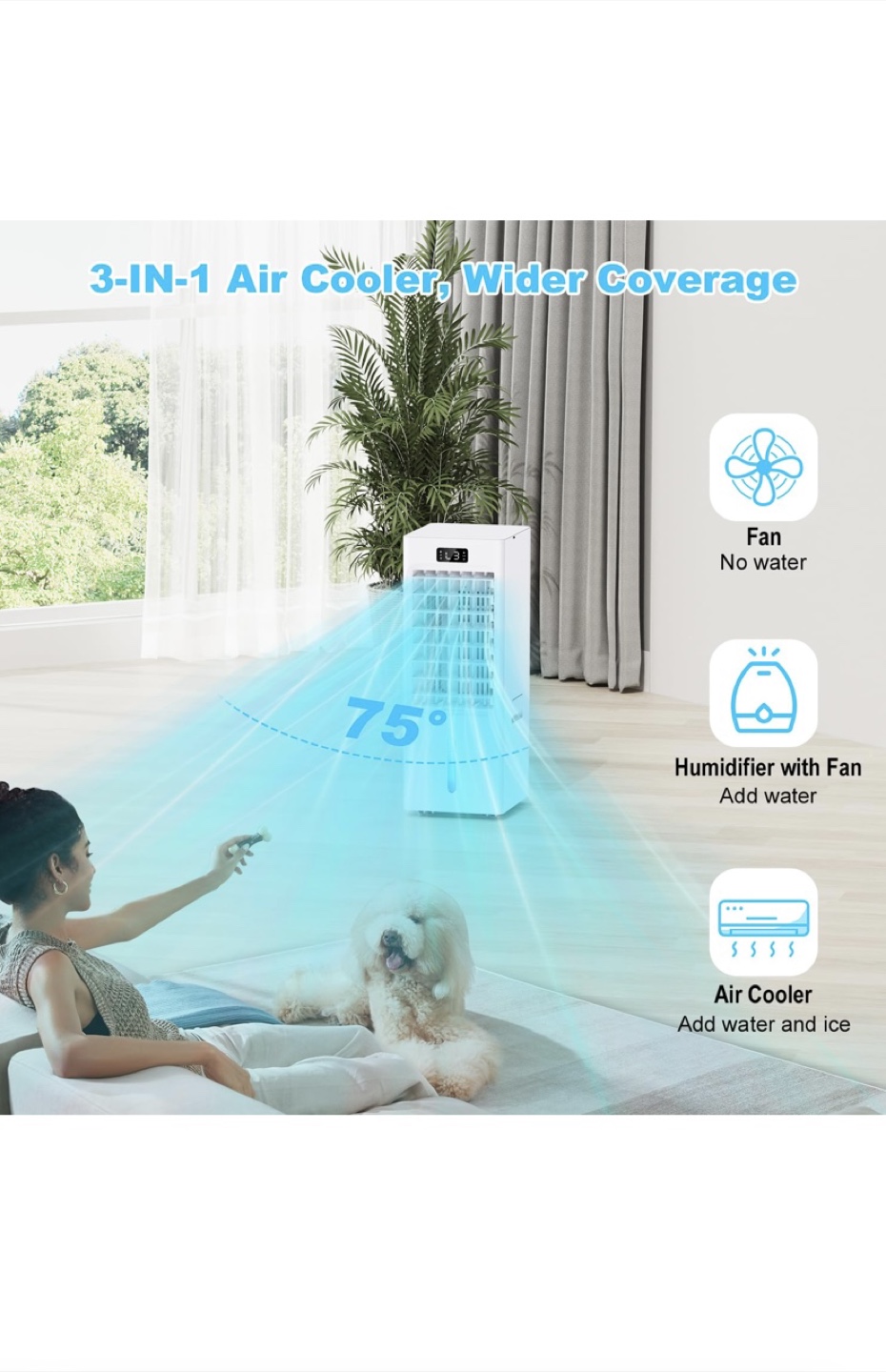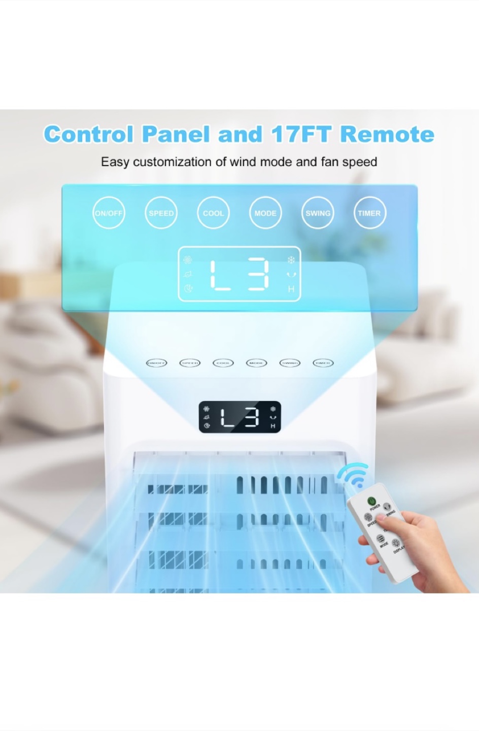 3-in-1 Portable Air Cooler, 6000ML Water Tank with 4 Ice Packs, 3 Speeds & Cooling Modes, 12H Timer, 75° Oscillation, Quiet Sleep Mode, Portable AC Unit with Remote Control