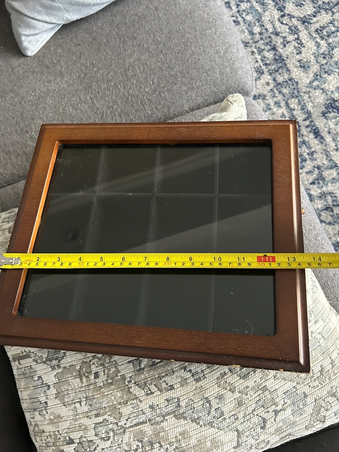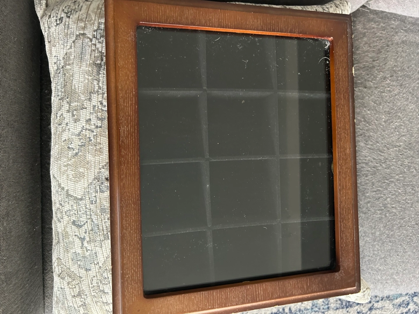 Selling a wooden display box, perfect for displaying small items or collections. It's approximately 14x14 inches. There are some signs of wear, as shown in the photos.