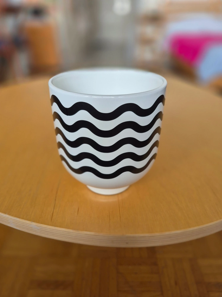 1000+Vintage Ikea plant pot with a nifty black and white wave pattern. Glazed ceramic, pure white on the inside. π Never used, it is in perfect new condition. I loved the look of it so it has just sat on my shelf adding its postmodern design to my decor, but I've never actually used it for a plant so it is spotless!