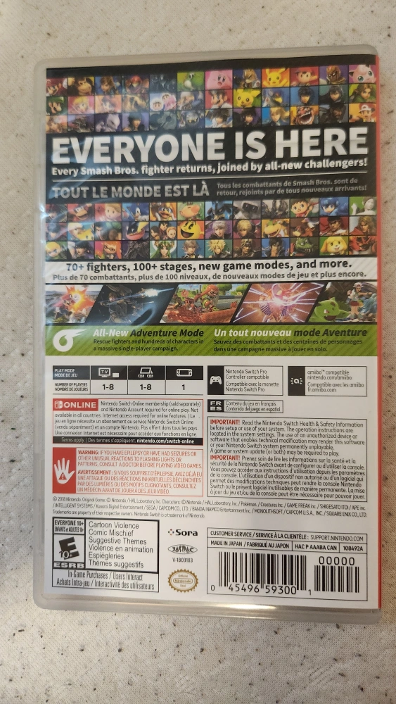 Selling a copy of Super Smash Bros. Ultimate for the Nintendo Switch! It's in great condition and ready for a new player. Get ready to battle with all your favourite characters!