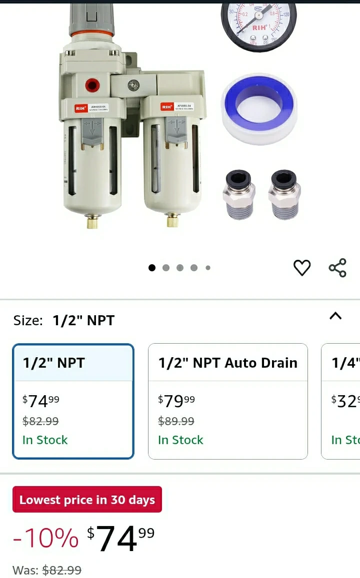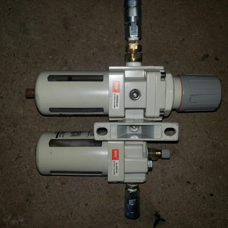 Selling a RIH air filter regulator lubricator. It appears to be in good working condition. It can handle a max pressure of 1MPa or 150PSI and a max temperature of 60°C (140°F)