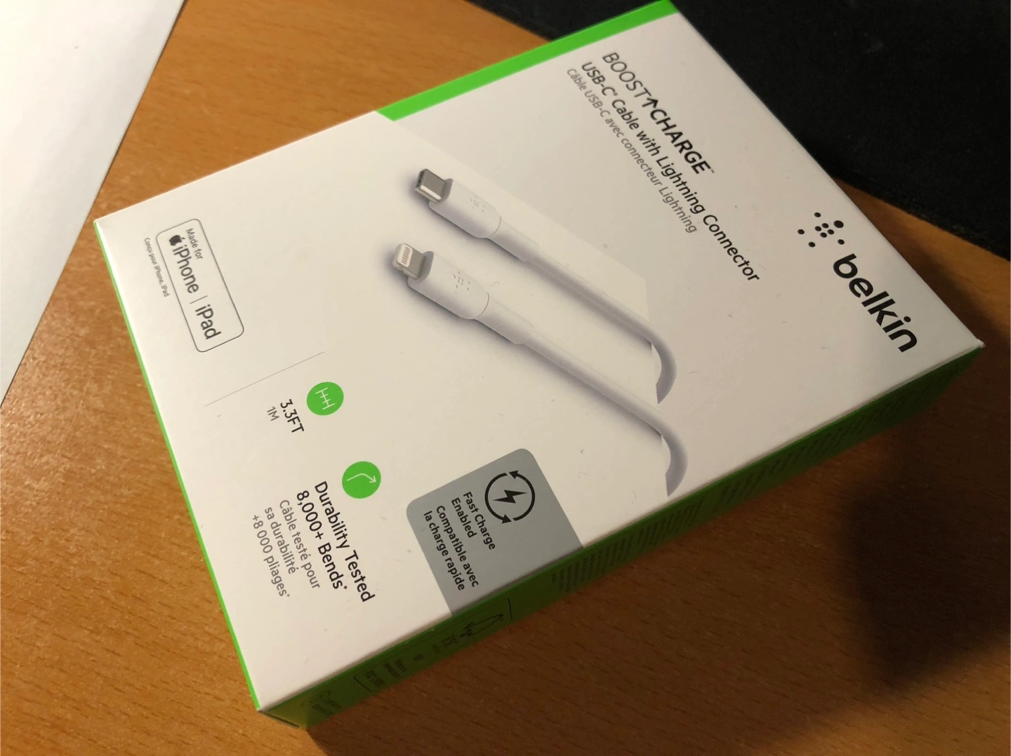 624Selling a brand new Belkin BOOST↑CHARGE USB-C Cable with Lightning Connector! It's still in its original packaging. This cable is MFi certified to meet Apple performance standards and supports fast charging up to 30W. The cable is 3.3ft (1M) long and has been tested for durability up to 8,000+ bends, ensuring strength and reliability. Great for iPhones and iPads