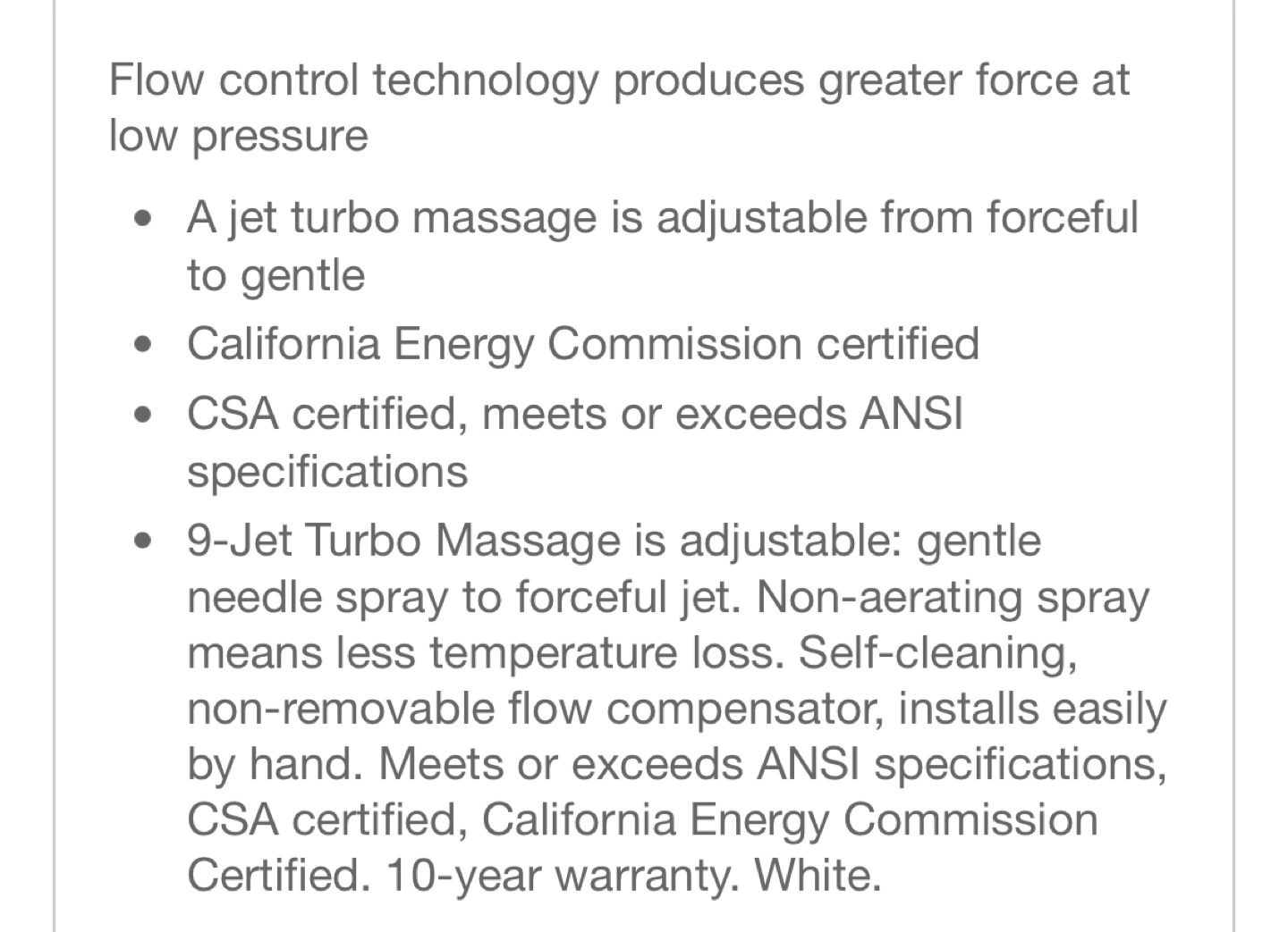 - 9-Jet Turbo Massage with non-aerating spray for less temperature loss