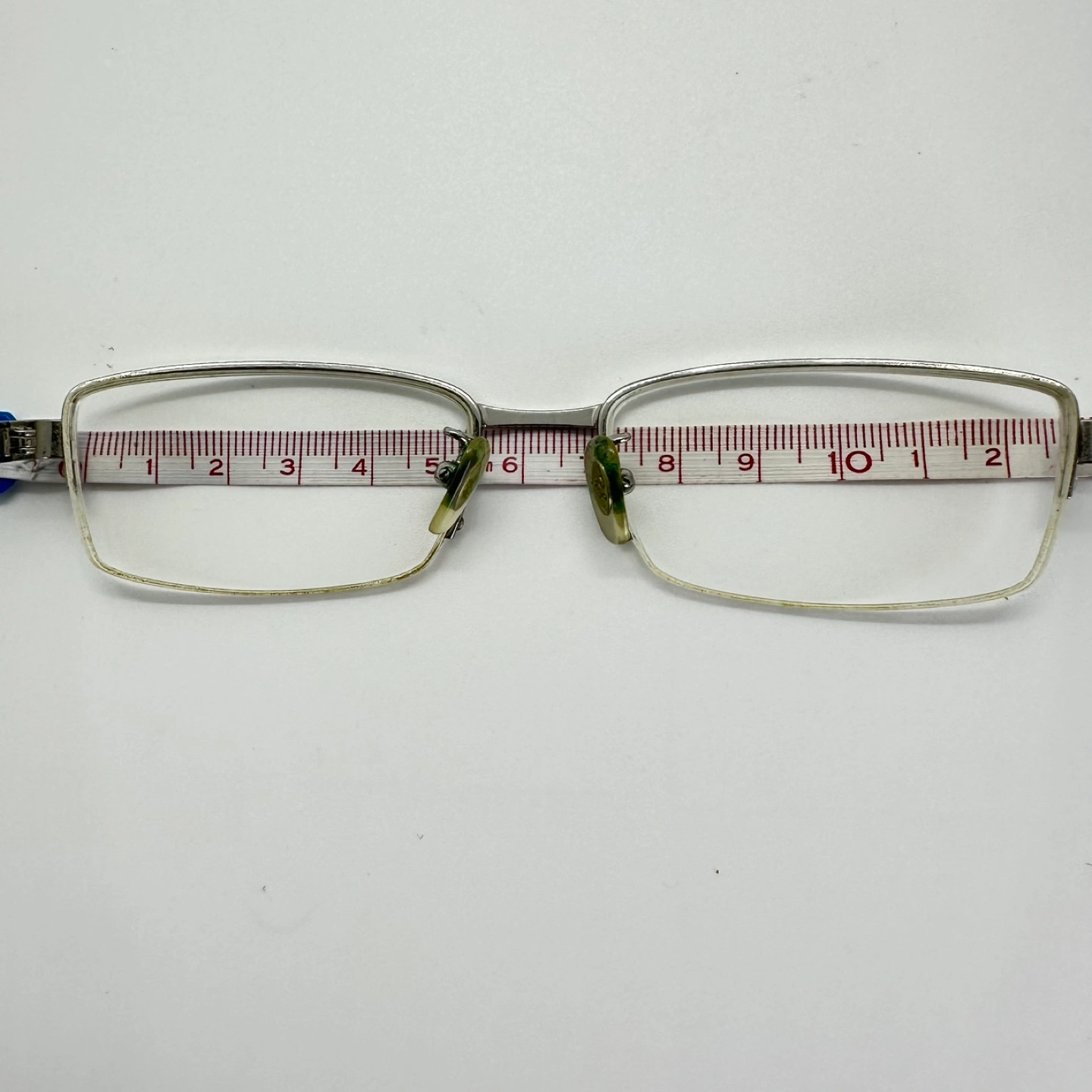 Condition : Signs of wear around the nose pads and need to be replaced. The frame requires some adjusting and is structurally intact. Non-hinged.