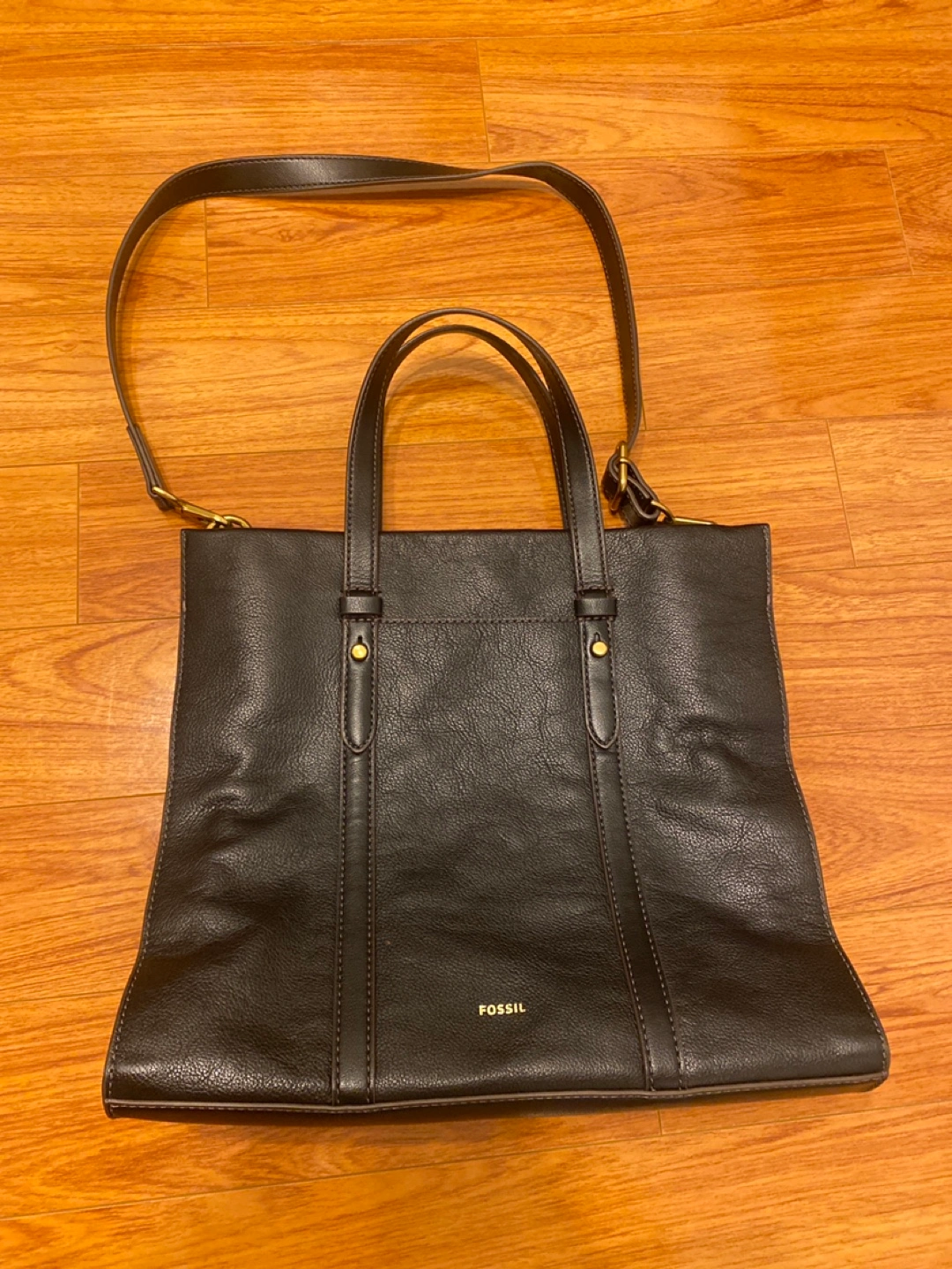 A classic black cowhide leather tote bag from Fossil. Spacious with multiple compartments inside. Features a detachable shoulder strap. Used to use this for work, I can fit my iPad 11β in here. Donβt need it anymore. Functional and fashionable!