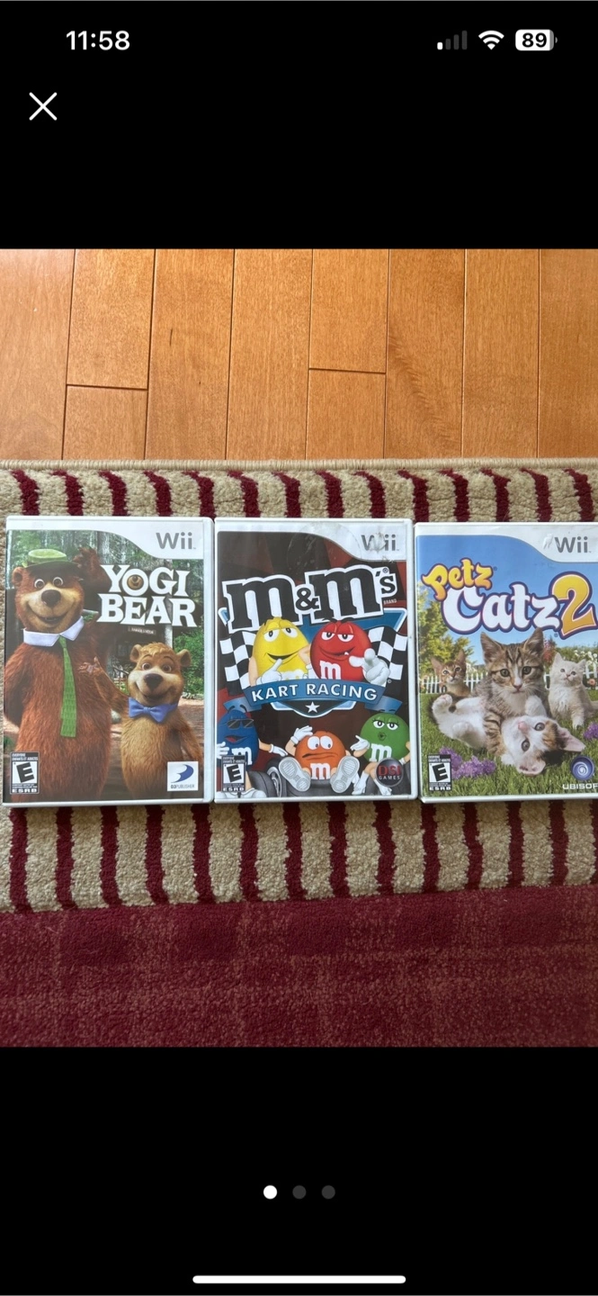 Selling three Wii games together: Yogi Bear, M&M's Kart Racing, and Petz Catz 2