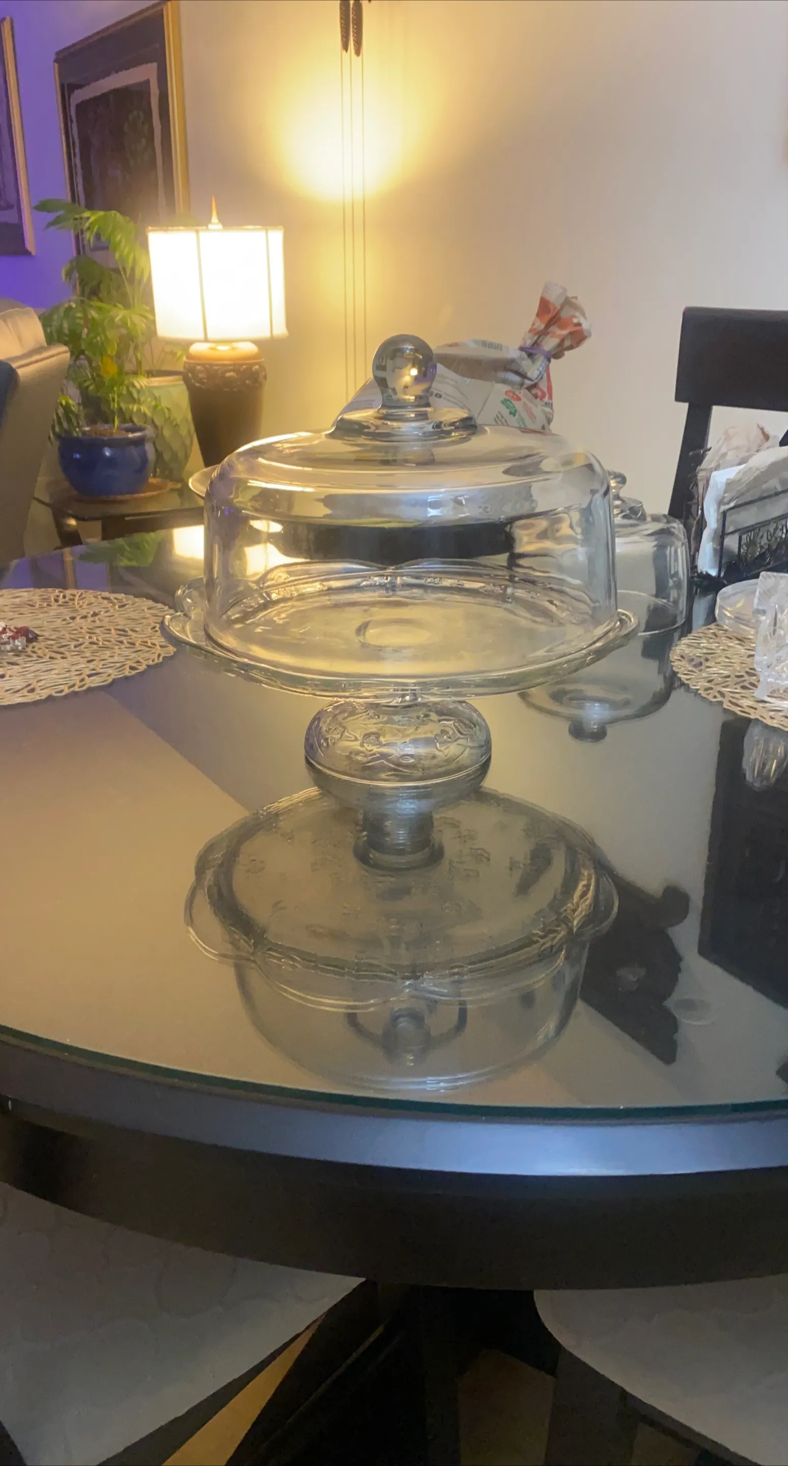 Selling a lovely glass cake stand complete with a dome lid. Perfect for displaying your baked goods or desserts in style! It's in great condition and ready to find a new home.
