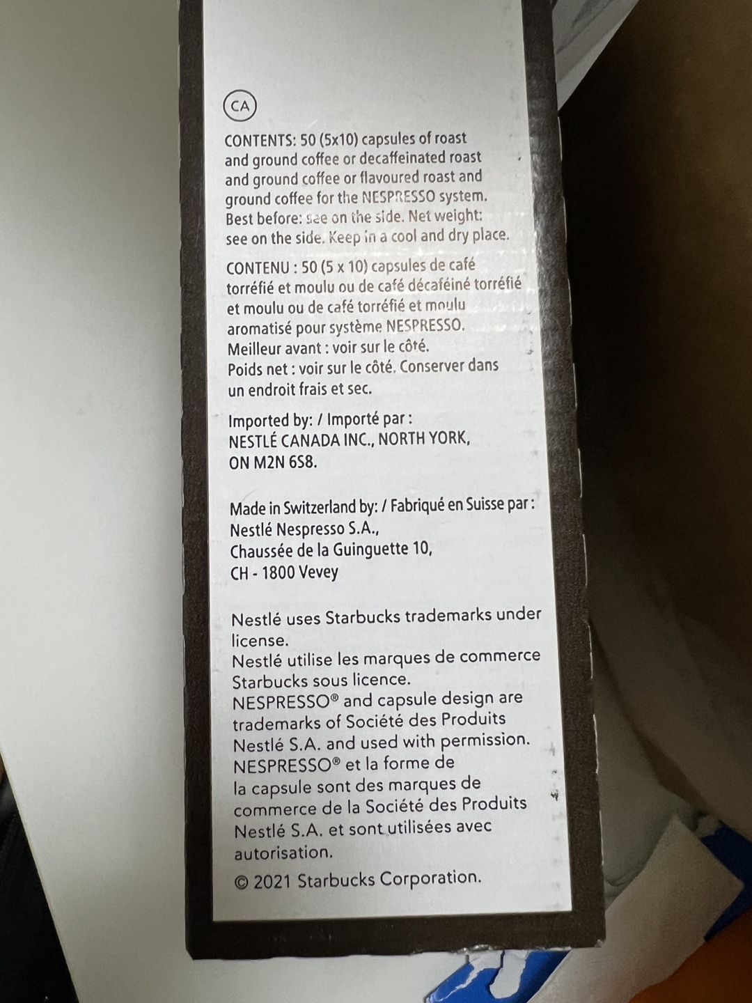 I'm selling a box of Starbucks Espresso Roast Nespresso pods! The box contains 50 capsules of roast and ground coffee. Unopened. Meet at First Markham Place or Fairview mall