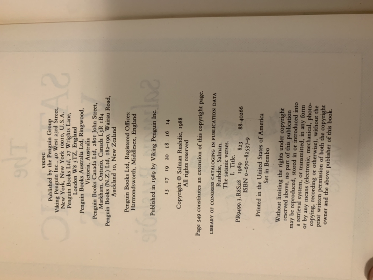 832Salman Rushdie @The Satanic Verses” hardcover in EUC-near perfect condition. No creases. Minimal wear on cover. Price is negotiable when purchasing multiple items Pick up in Roncesvalles. No Holds Please. Same Day/Next Day pick up Preferred.