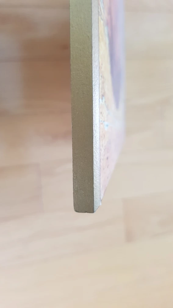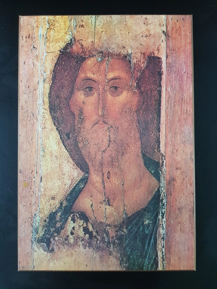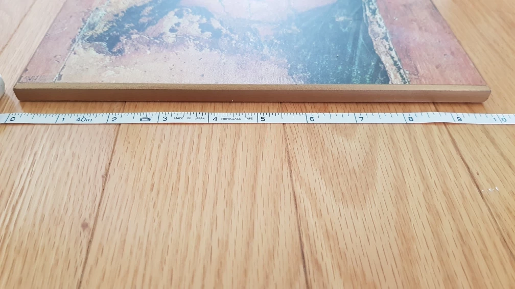 Smooth wooden icon picture that can be hung on or leaned against a wall.