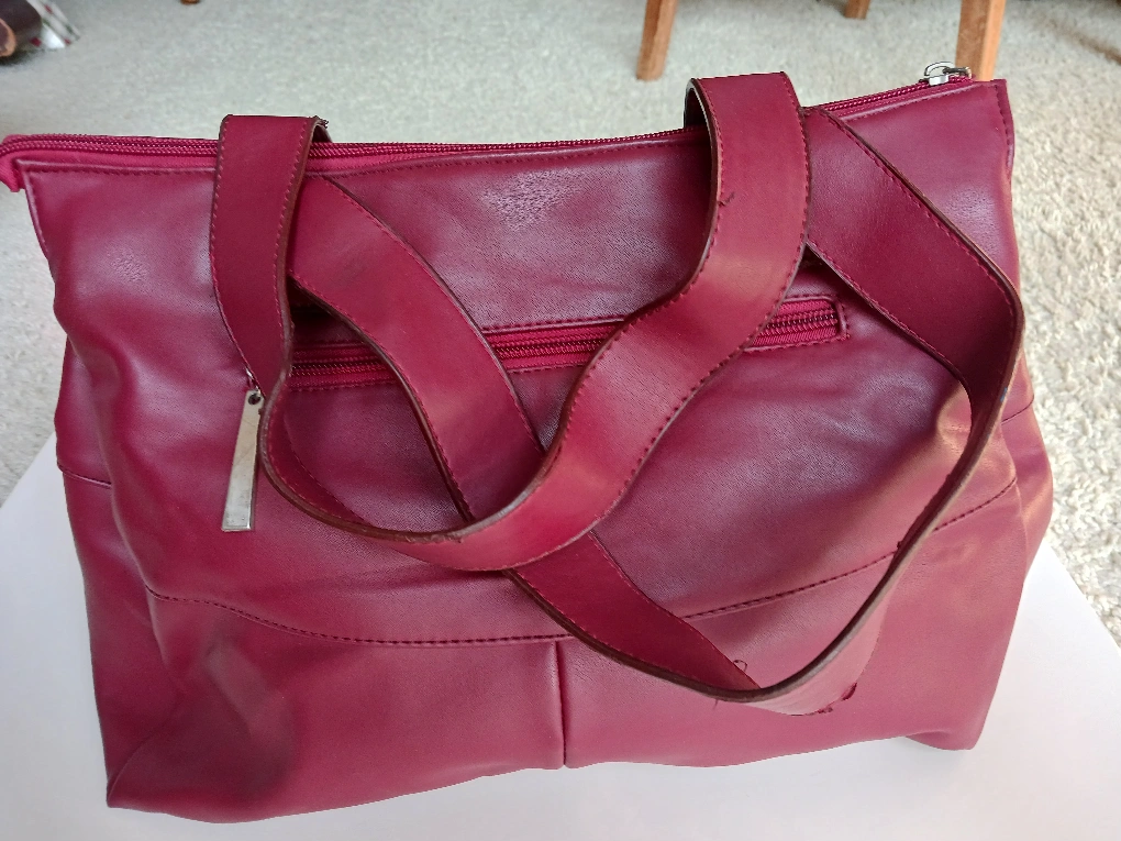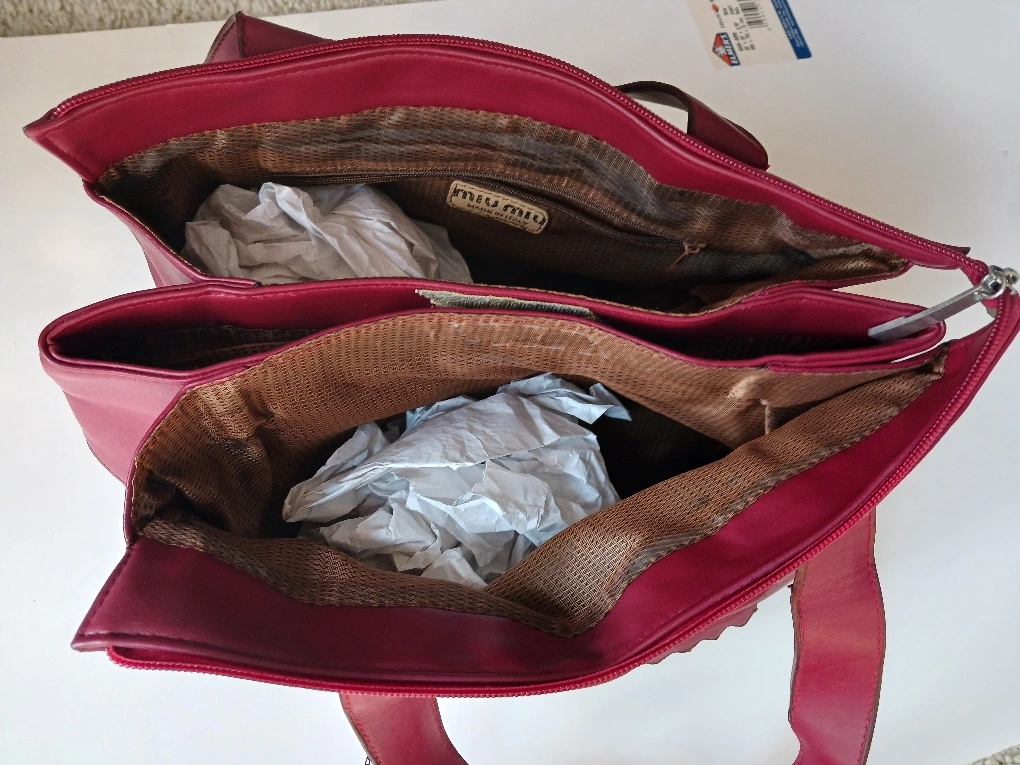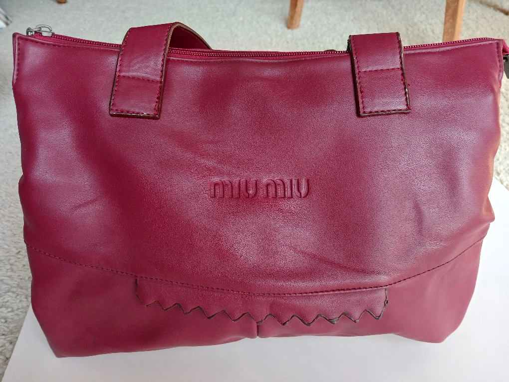 Here's a stylish burgundy leather tote bag from Miu Miu! It's in great condition and ready for a new home. Perfect for carrying your essentials around town. Size: 32cm x 25cm