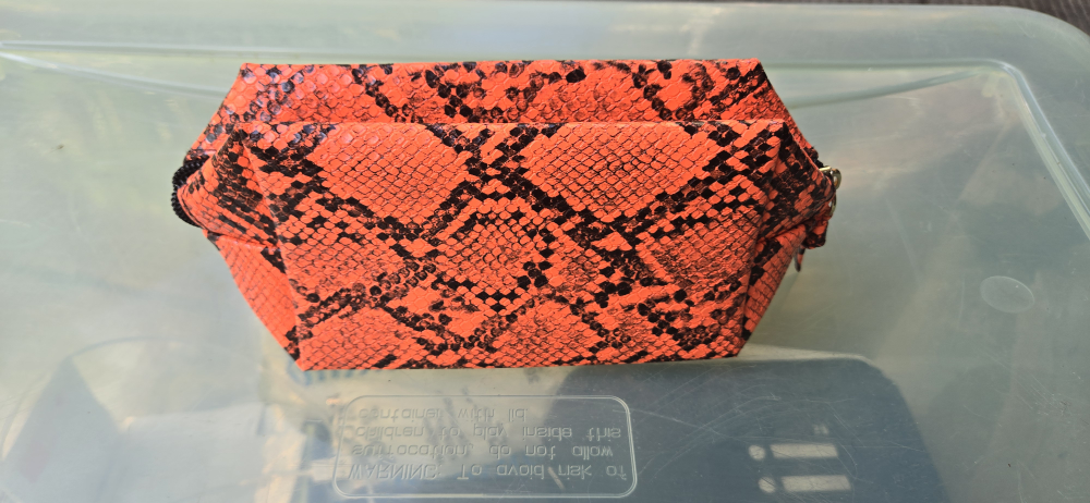 This is a fun orange makeup bag with a snakeskin print! It's in great shape and ready for a new home. Perfect for keeping your essentials organized, whether you're travelling or just need a handy bag for your everyday makeup ππ