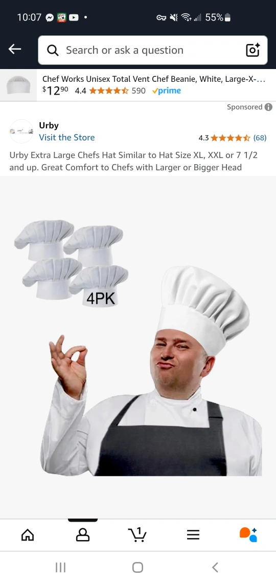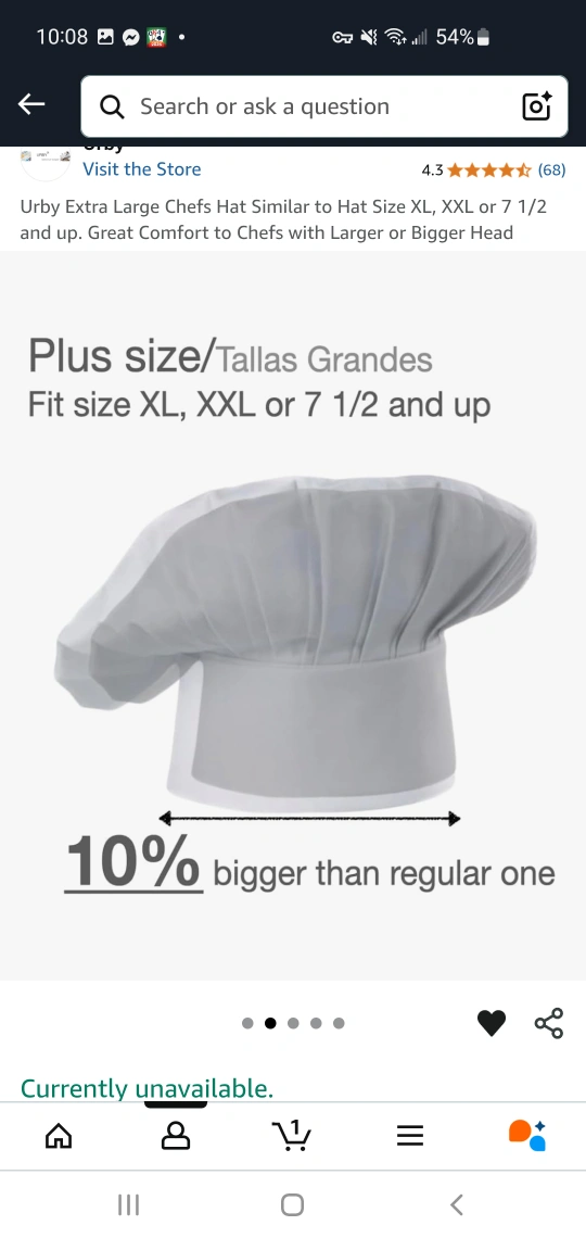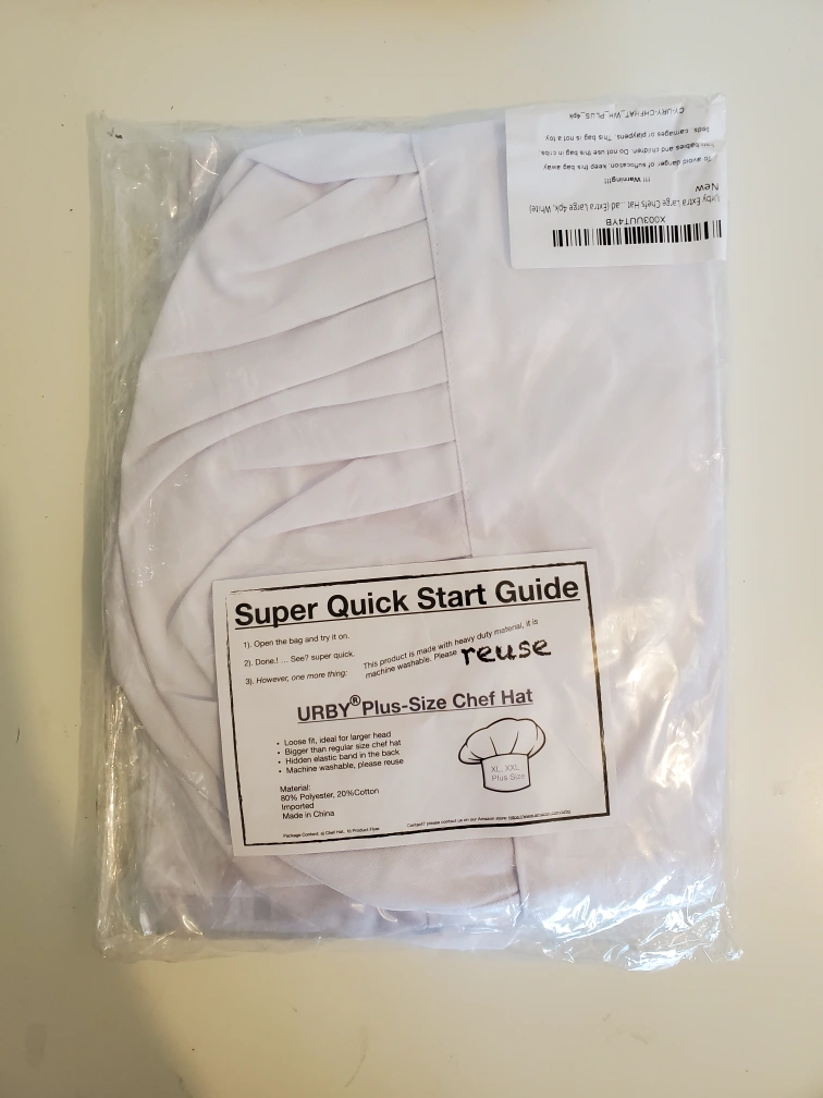 Selling lot of 4 brand new Urby Extra Large Chef's Hat, still in its original packaging! It's a plus size, fitting XL, XXL, or 7 1/2 and up. This hat is designed for great comfort, especially for chefs with larger heads. It's made from a durable, machine-washable material and features an elastic band for extra space and comfort. The hat is also 10% bigger than a regular one!