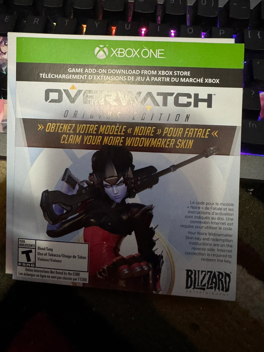 Redeem your code for Overwatch Origins Edition digital goodies on Xbox One. This includes exclusive content such as the Noir Widowmaker skin. Internet connection required to redeem.