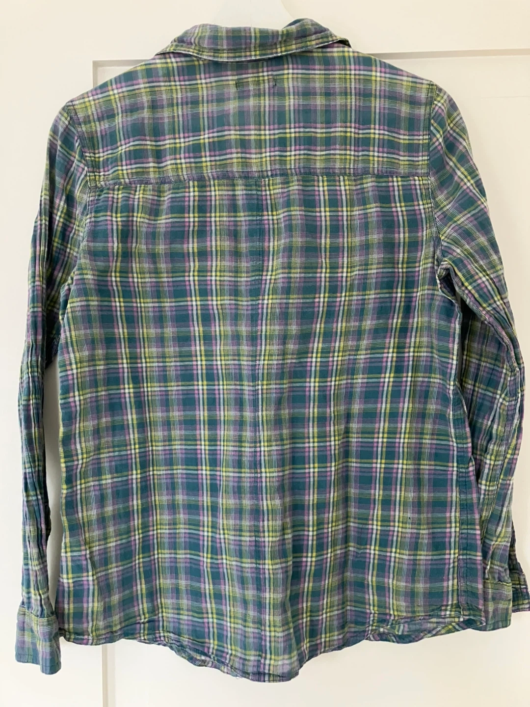 Colorful collection of plaid button down shirts. Five shirts total, great for layering or casual wear. Almost all 100% cotton (except for purple one), size small (pink one is XS but fits super oversized). Will also sell individually and can send more pictures.