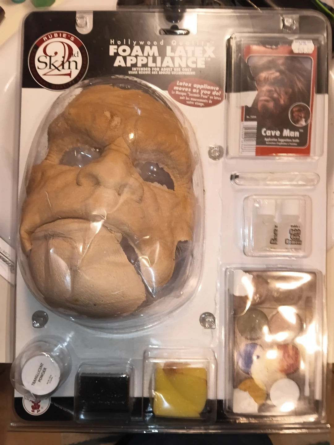 This is a Cave Man foam latex appliance from Rubie's Skin Hollywood FX. It's intended for adult use only and includes a translucent powder. Application suggestions are inside the packaging.