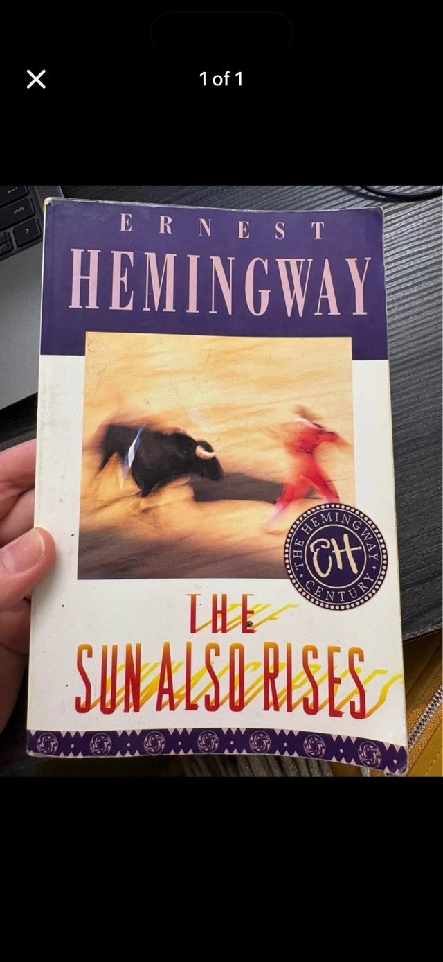 Used copy of "The Sun Also Rises" by Ernest Hemingway. This book is in good condition and ready for a new reader to enjoy its classic storytelling. It has the 'Hemingway Century' emblem on the cover.