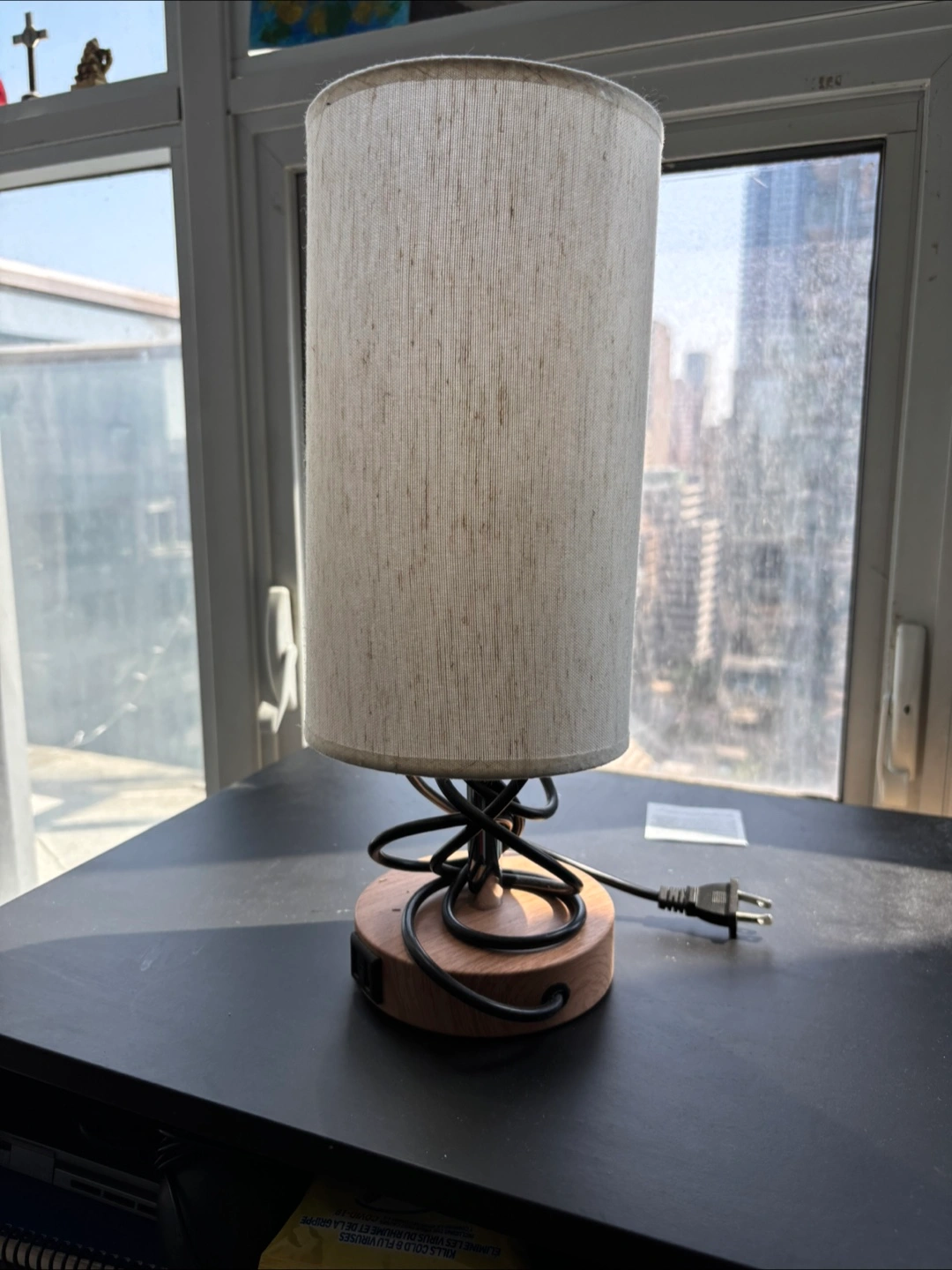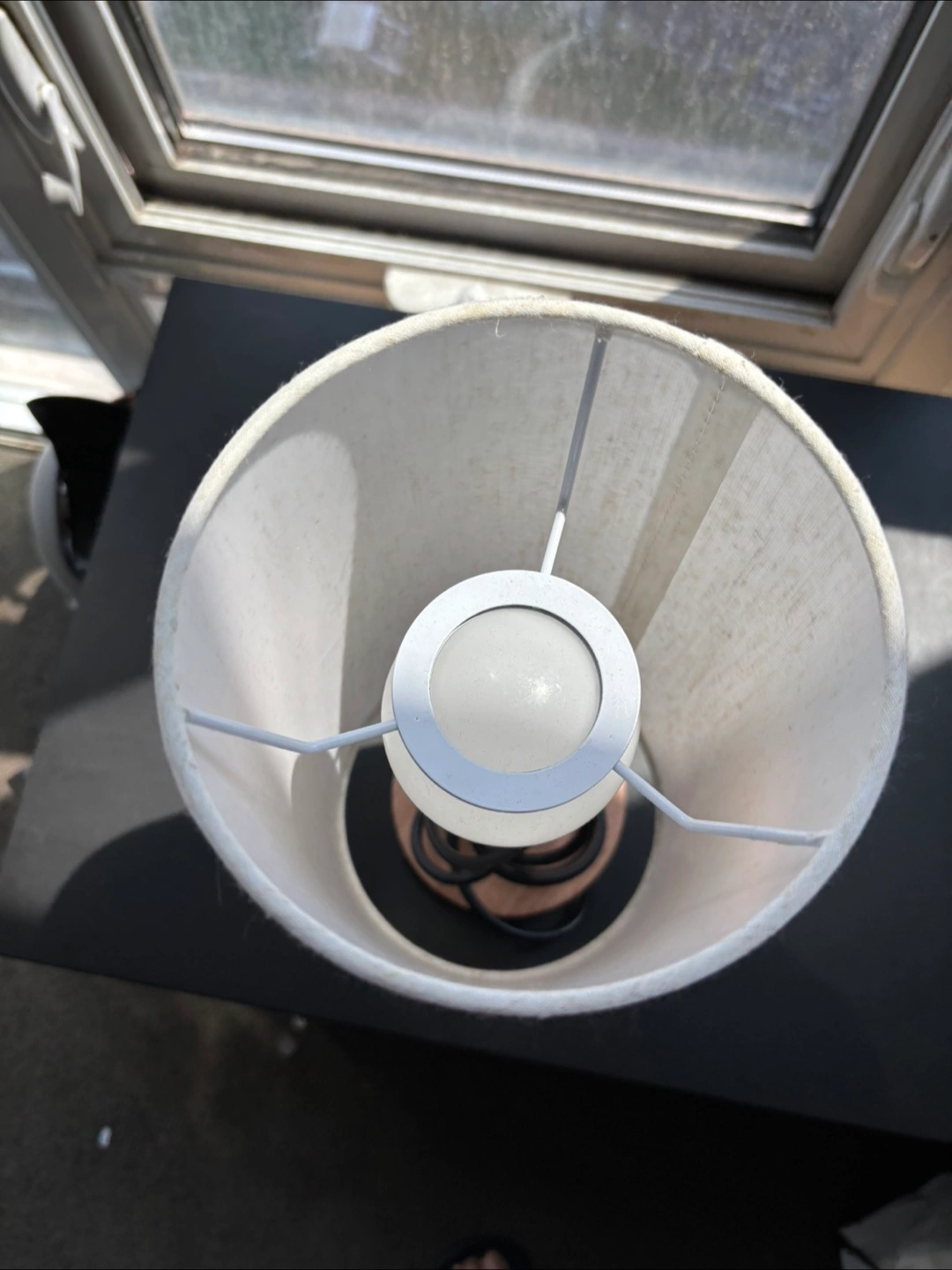 Selling a table lamp, perfect for adding a touch of warmth to any room. It has a linen shade. It's in a good condition and ready to brighten up your space!