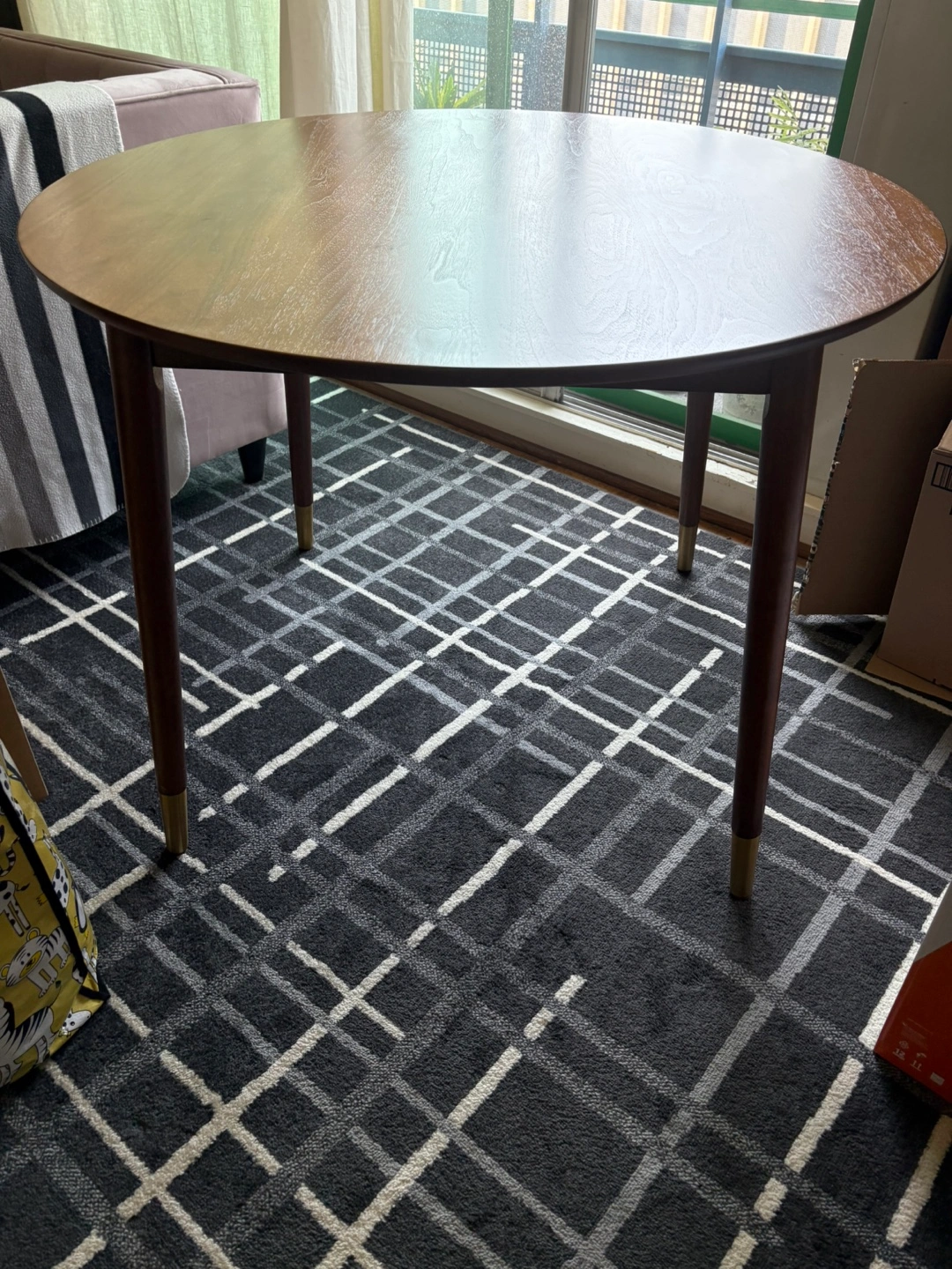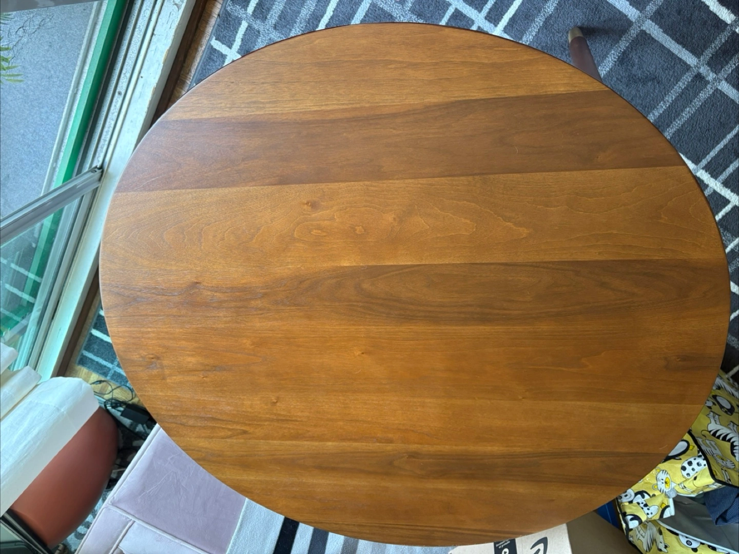 Selling a round wooden dining table that would be perfect for a smaller space or breakfast nook. It's in great shape and ready for a new home! The table has a warm, natural wood finish.