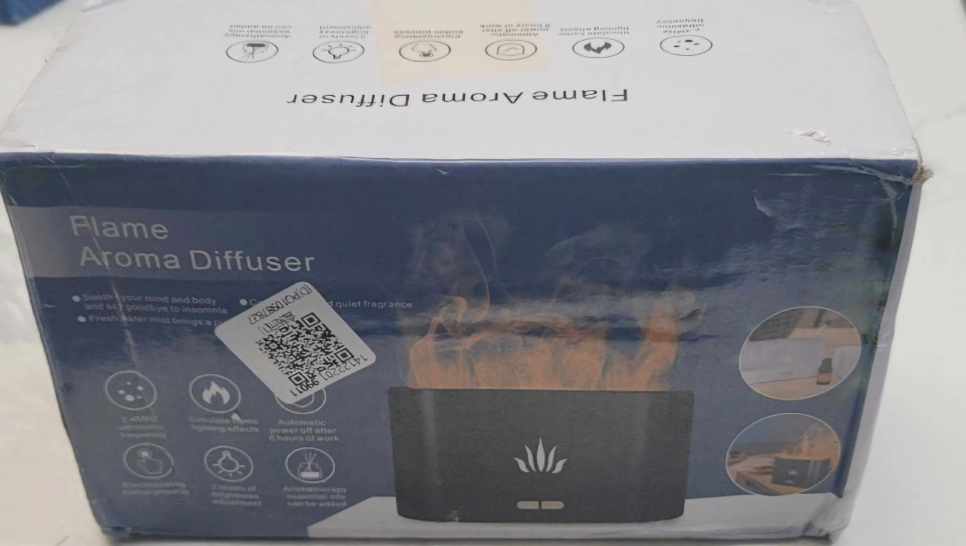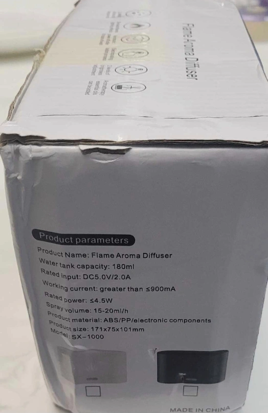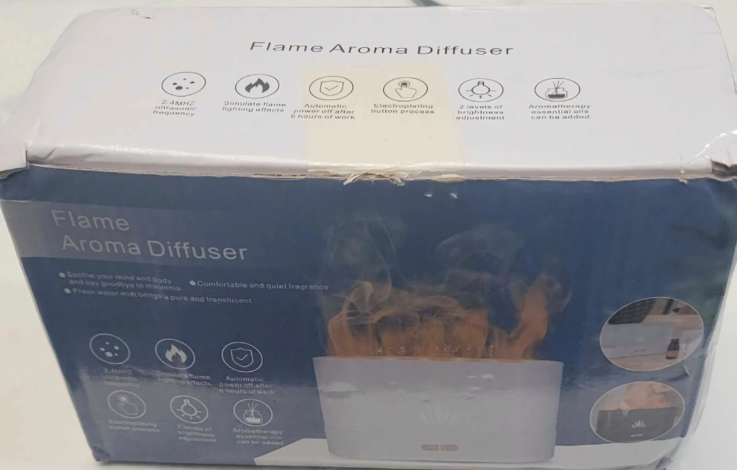 Enhance your home ambiance with this Flame Aroma Diffuser, featuring a realistic flame effect and whisper-quiet operation for a soothing experience. This new-in-box diffuser uses ultrasonic technology to disperse essential oils, creating a fragrant and relaxing atmosphere. Never used, ready to bring tranquillity to your space. * **Water Tank Capacity:** 180ml * **Rated Input:** DC5.0V/2.0A * **Rated Power:** 4.5W * **Spray Volume:** 15-20ml/h * **Product Size:** 171x75x101mm Transform your home into a fragrant haven! And, just a little heads up—if you are seeing this ad, the diffuser is available, ready to spark joy and relaxation in its new home! Pickup in Brampton near Sheridan College Davis campus