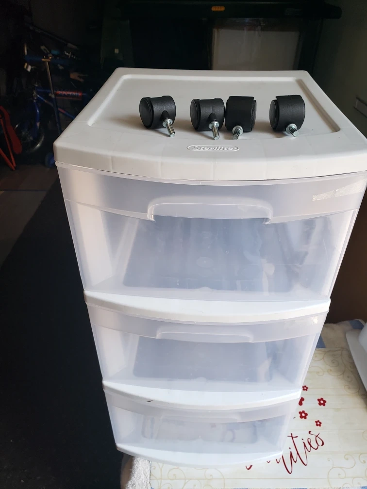 Selling a Sterilite 3-drawer wide weave tower. It comes with casters for easy mobility. Perfect for organizing your space!