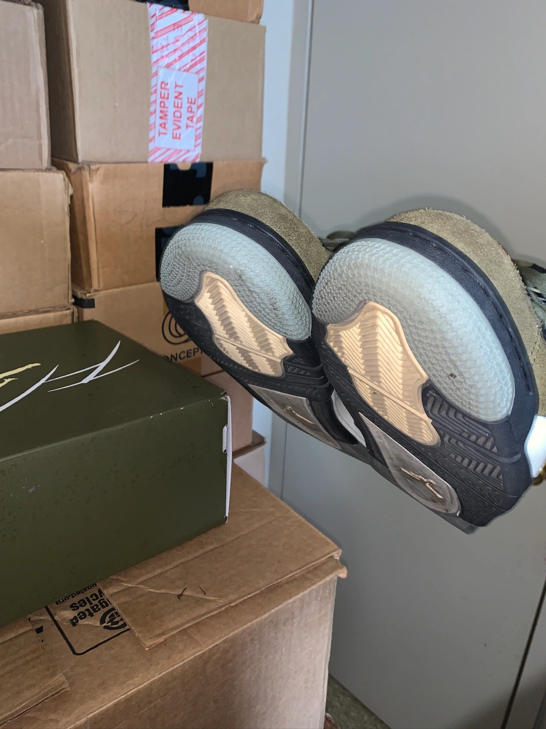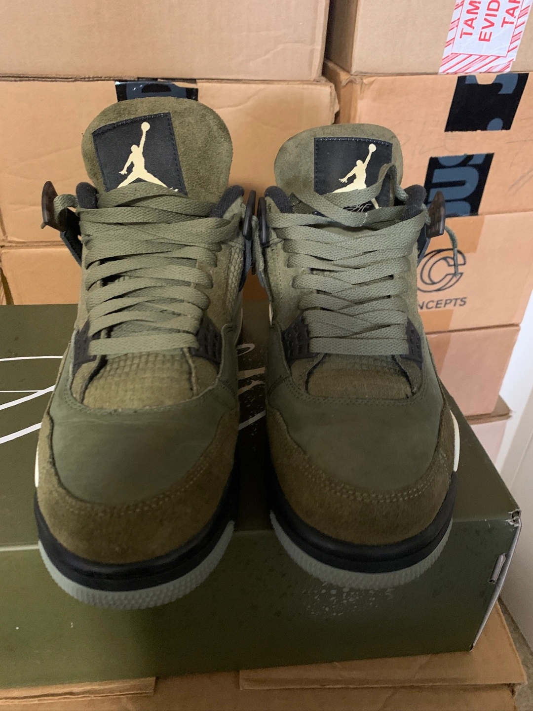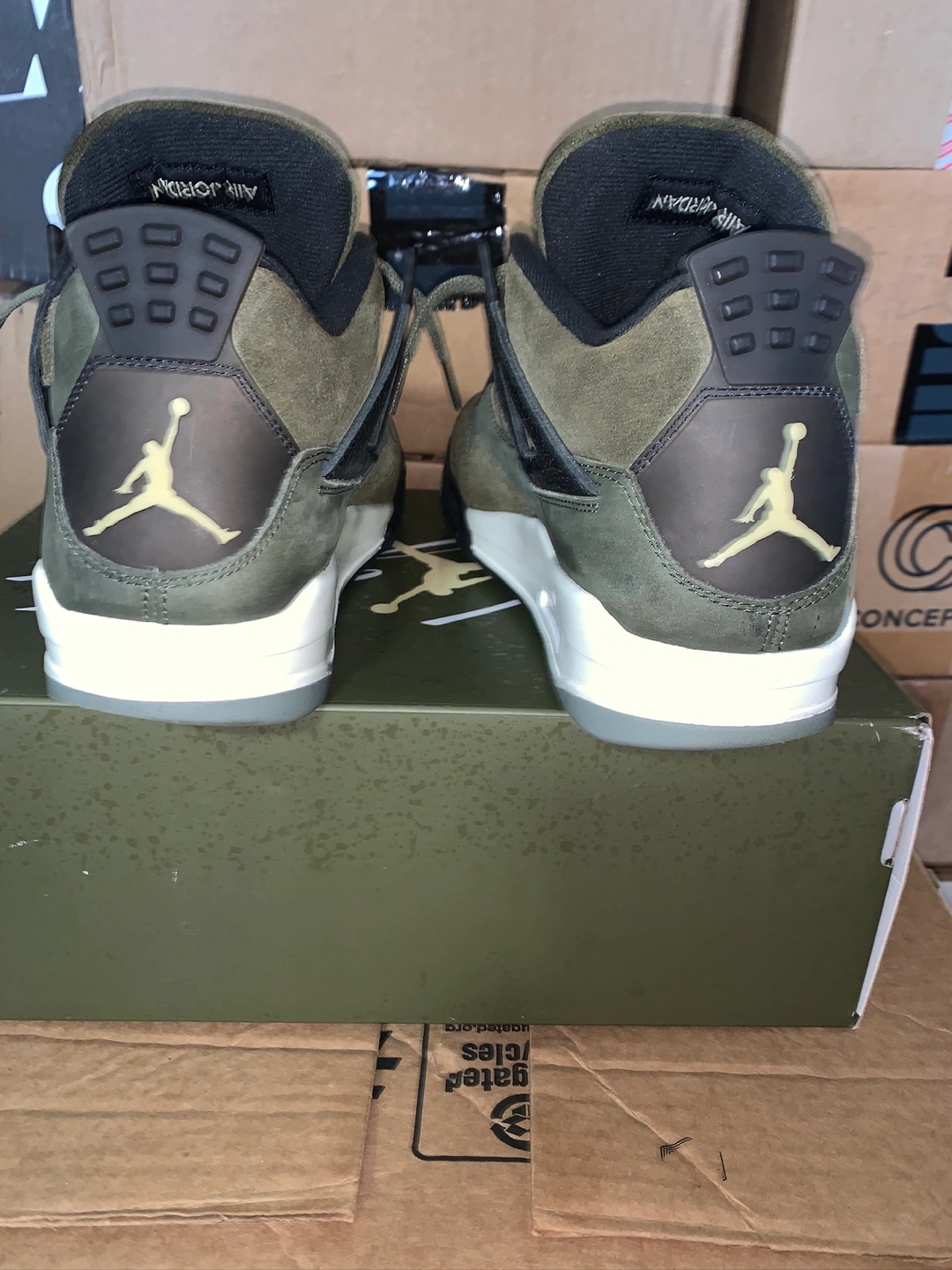 Selling a pair of Jordan 4 Olive craft shoes They come with the original box and in a worn condition