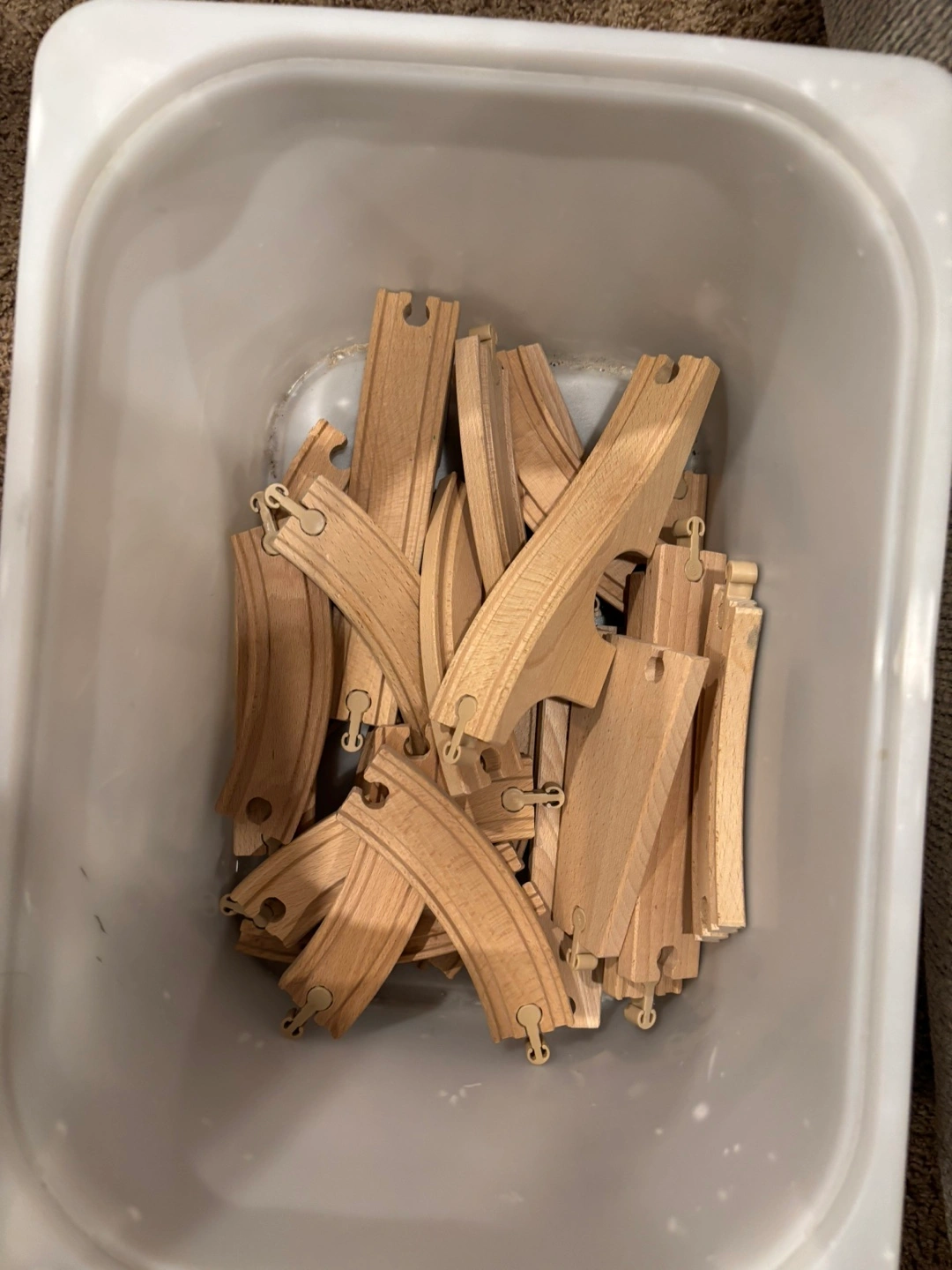 Selling a set of wooden train tracks! Great for building fun layouts and sparking creativity. Perfect for little engineers