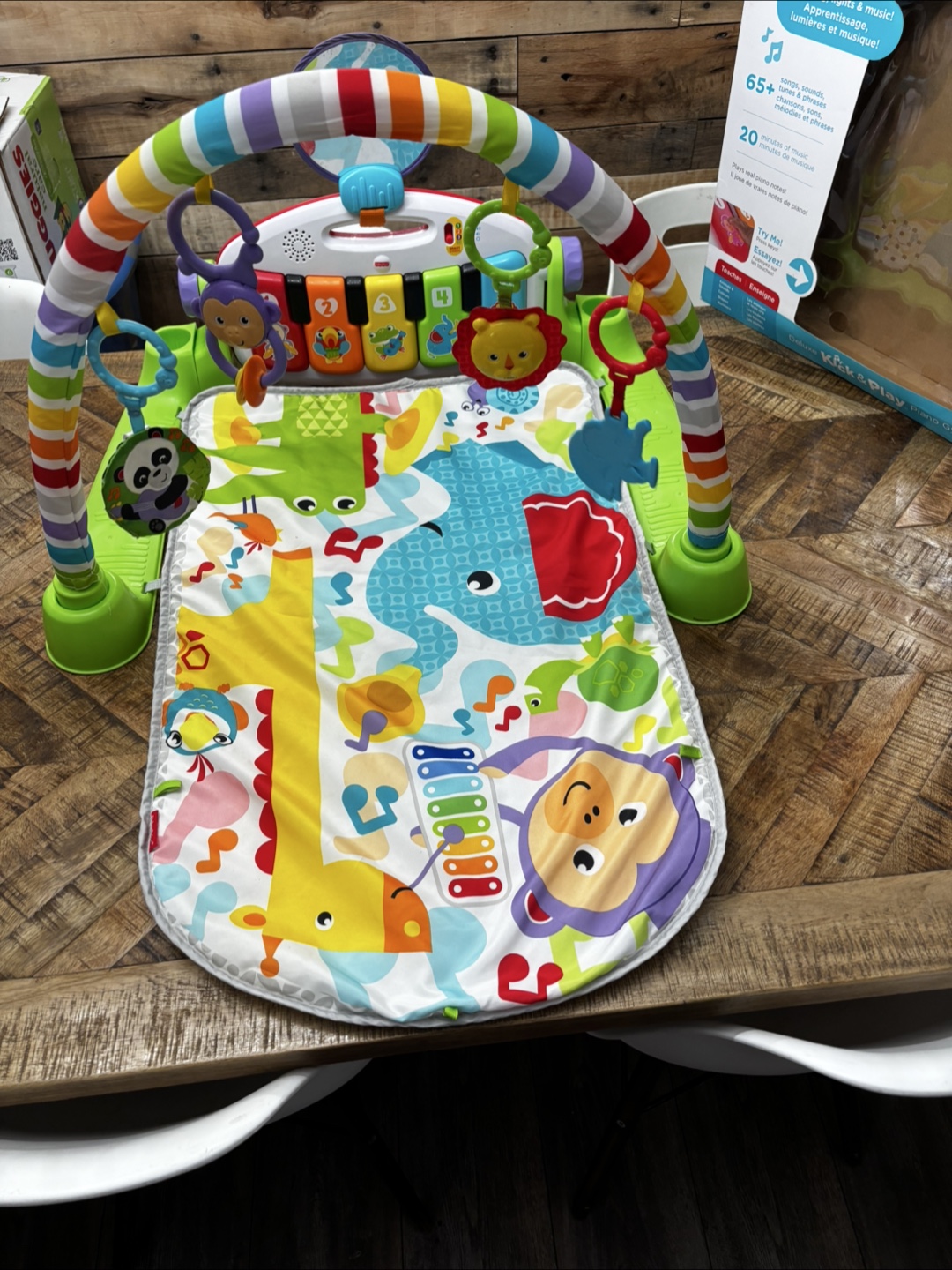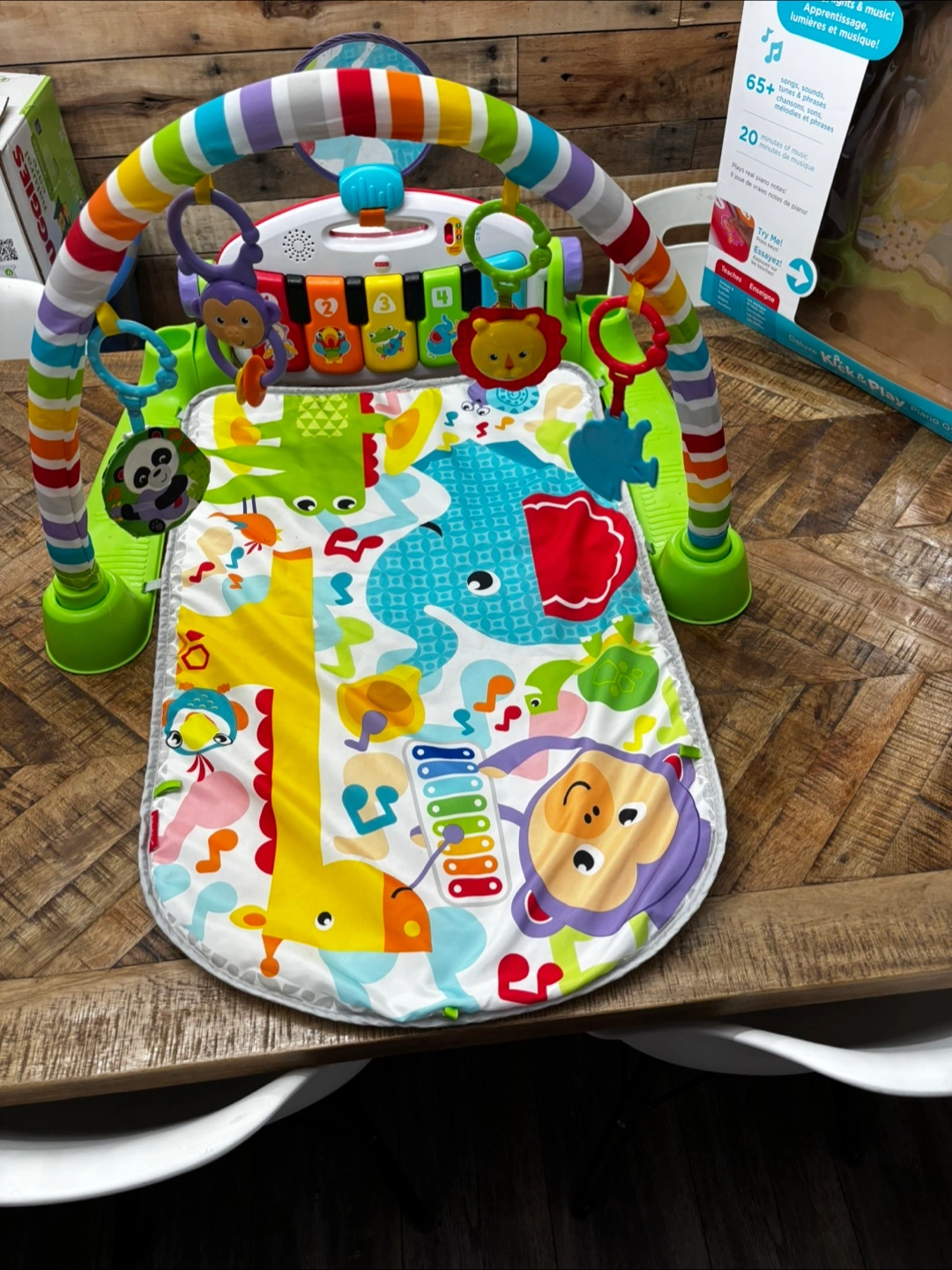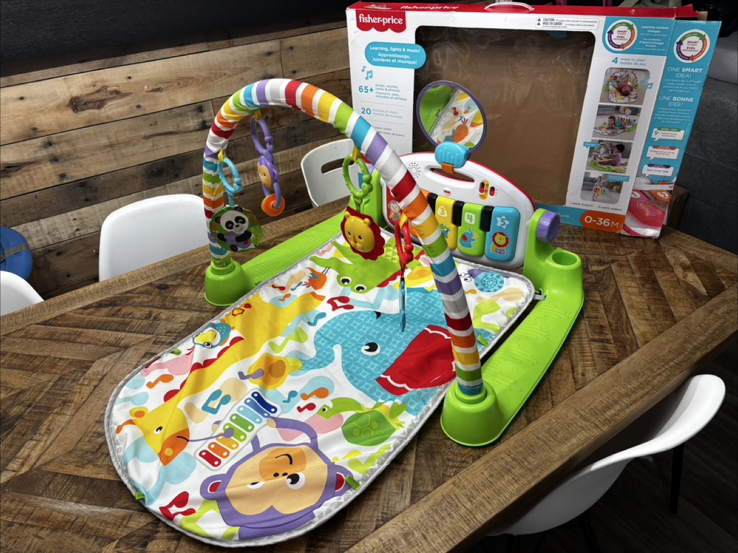 Selling a gently used Fisher-Price Deluxe Kick & Play Piano Gym. It's suitable for babies aged 0-36 months. Comes with the original box. Lots of fun lights, sounds, and music to keep your little one entertained and learning! Grows with your child too. From a pet friendly, smoke free home. Porch Pickup Only.