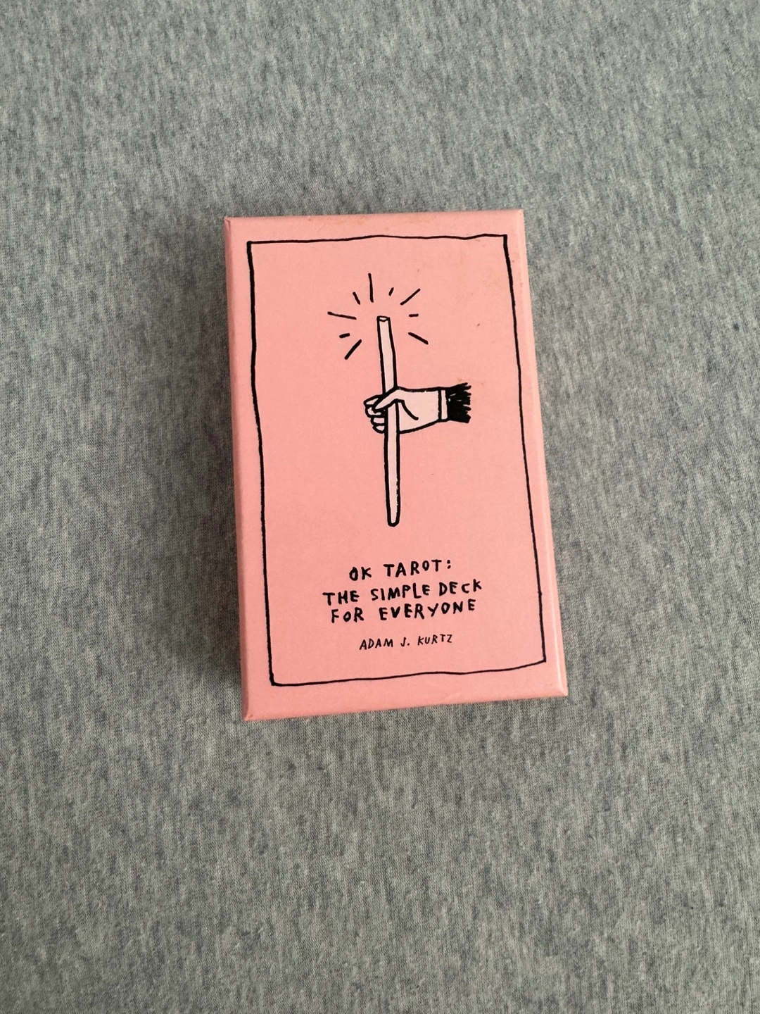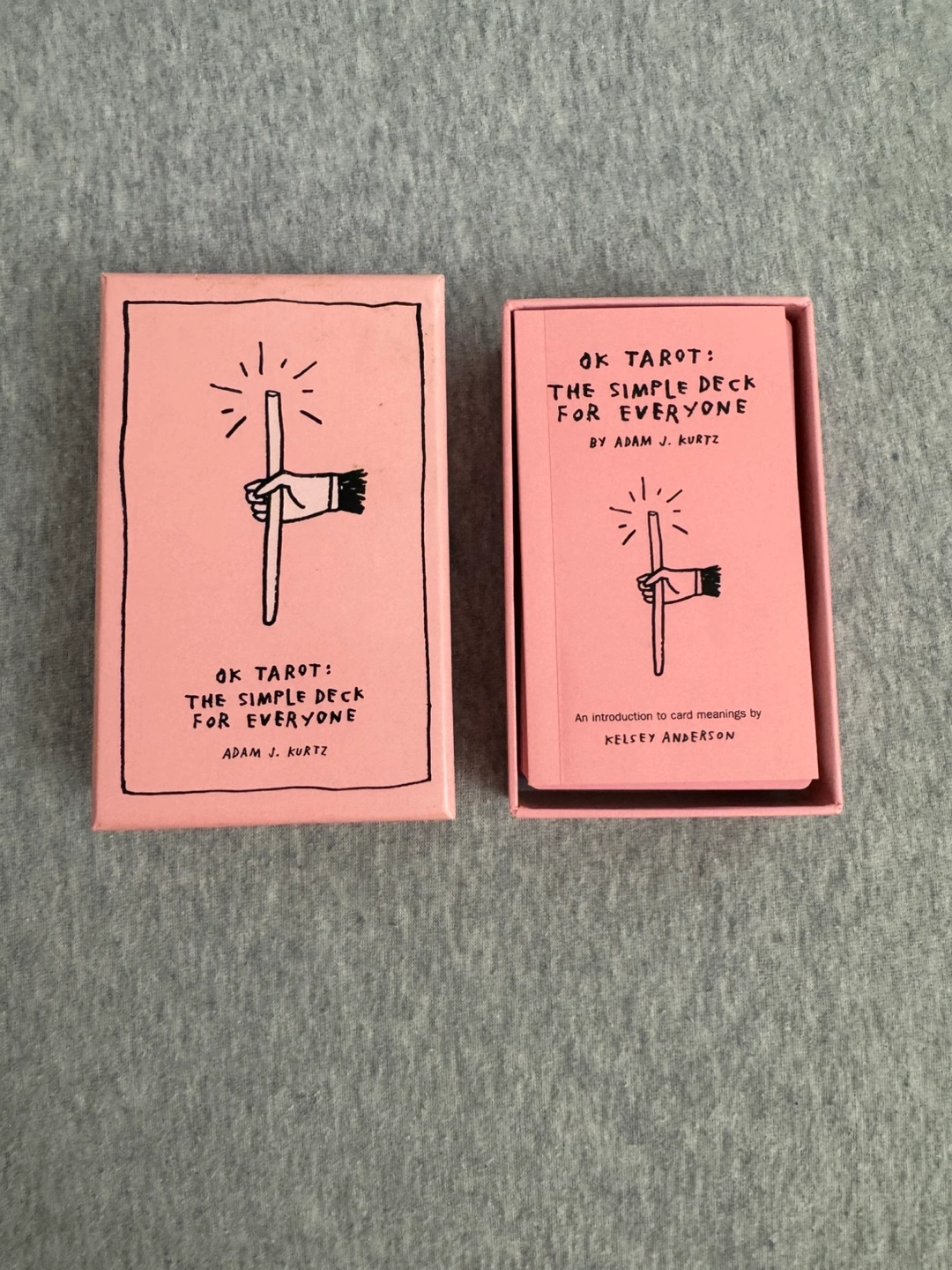 Selling a complete OK Tarot deck by Adam J Kurtz. It's a simple and accessible deck for anyone interested in learning tarot. The deck comes with an introduction to card meanings by Kelsey Anderson and includes the original box!