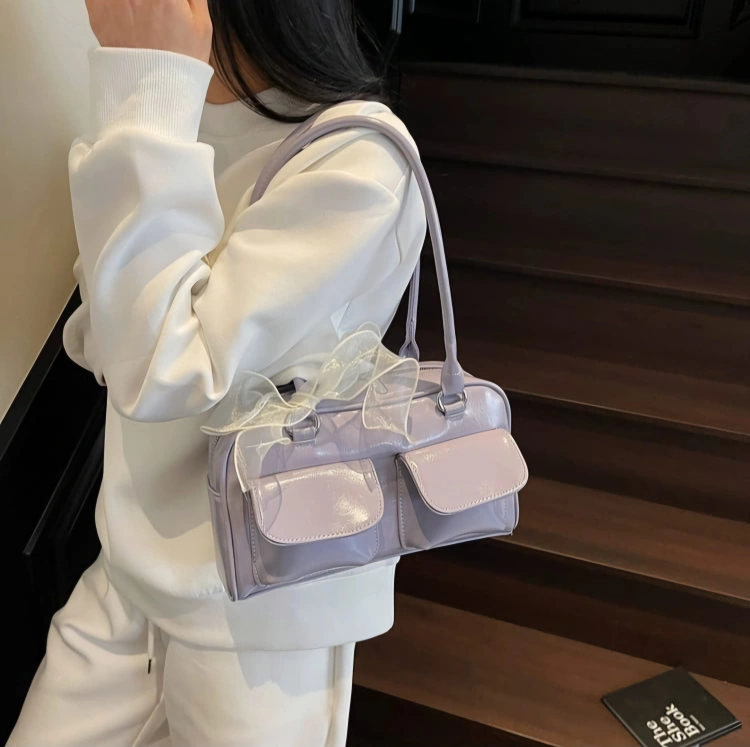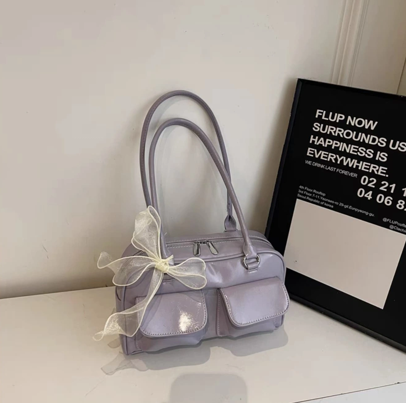 Selling this beautiful lilac handbag in brand new condition never used. It features a soft, elegant shade of lilac and a tasteful bow detail on the front, adding a subtle and refined touch to any look.