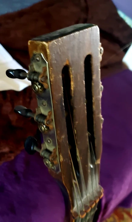 Make an offer, was 69, for this vintage guitar with a cool cowboy graphic! It's got a unique look and is perfect for someone who appreciates vintage instruments or wants a one-of-a-kind piece