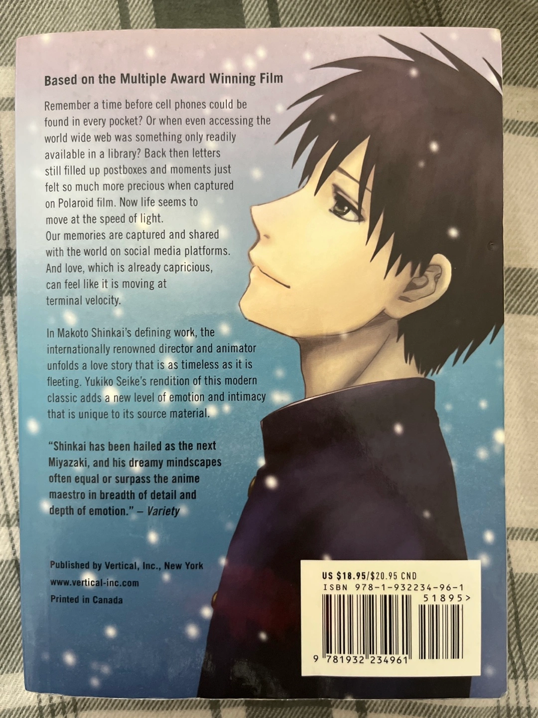 403Selling the book 5 Centimeters per Second. It's a story by Makoto Shinkai with art by Yukiko Seike. Published by Vertical, Inc. in New York. It was originally bought for $18.95 USD or $20.95 CAD