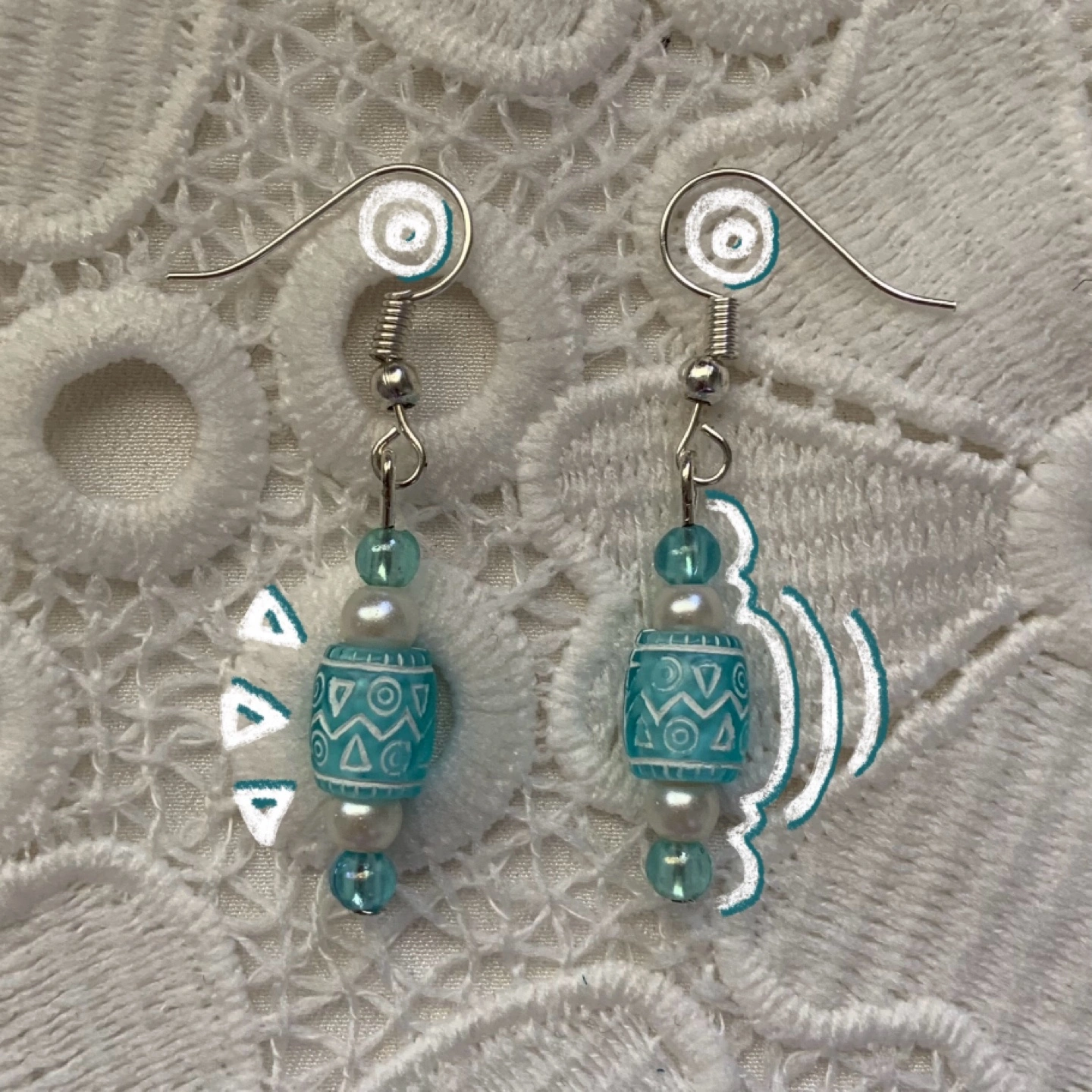 Turquoise & Pearl Handmade Beaded Dangle Earrings