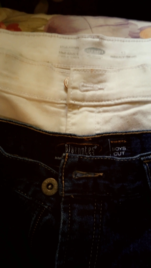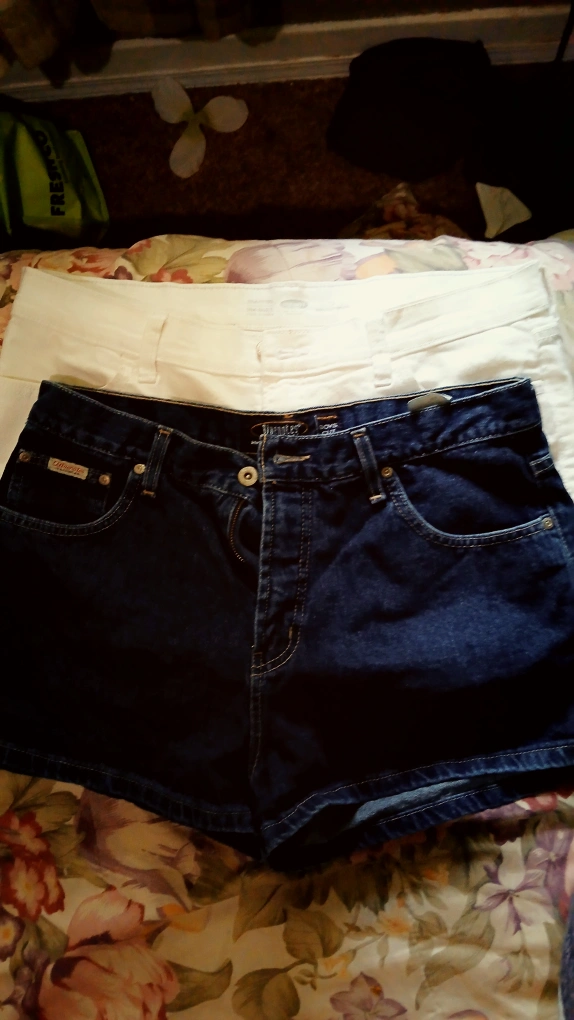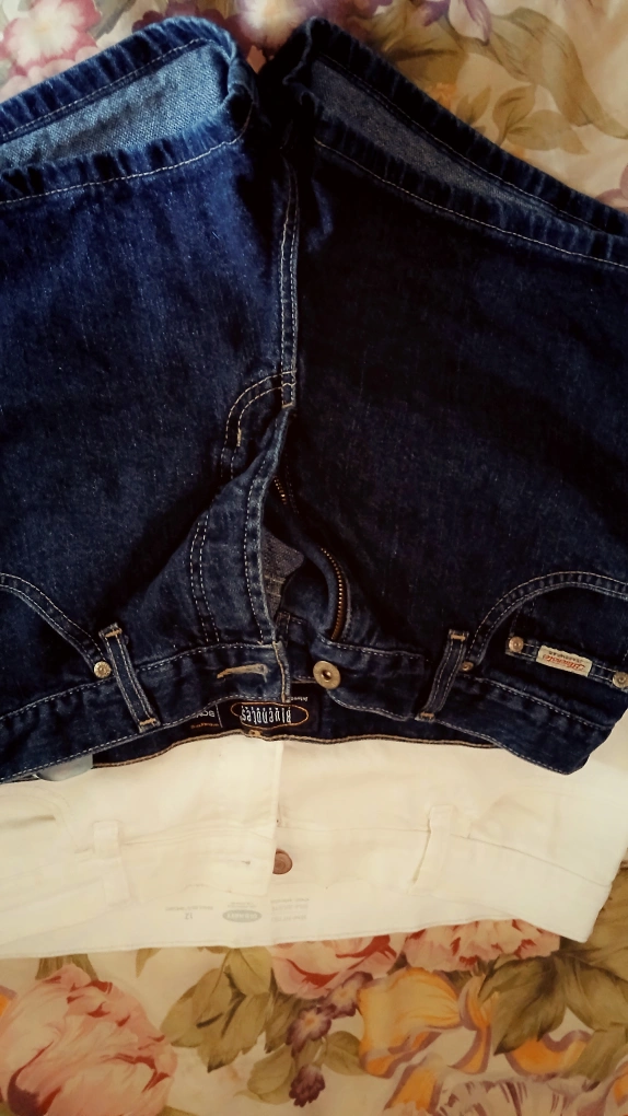Selling a pair of Old Navy white shorts have stretch size 12 and Bluenotes denim shorts have no stretch size 34 . Both fitted me the same, no longer fit do to weight loss .They're in good condition and ready for a new home 15$ for both