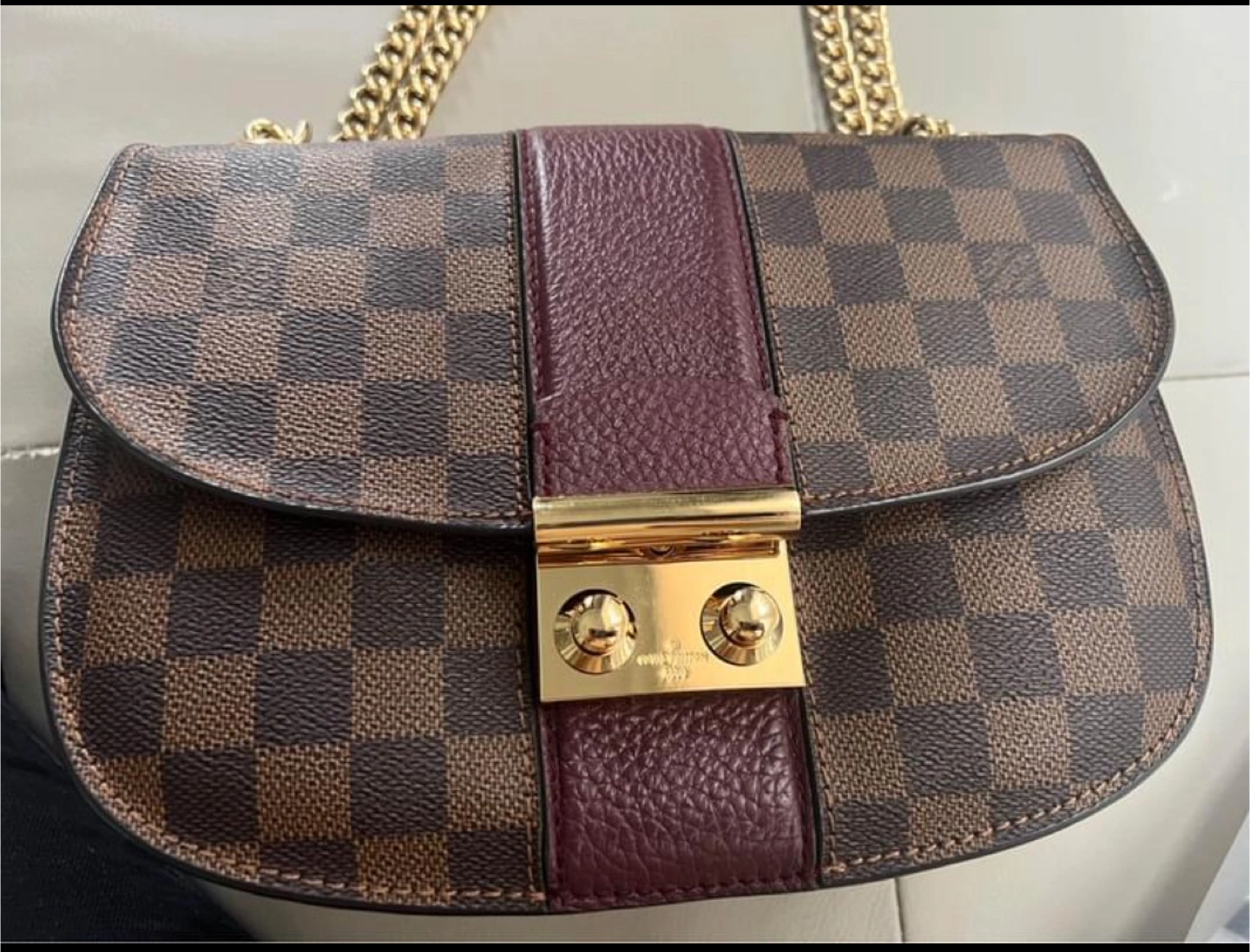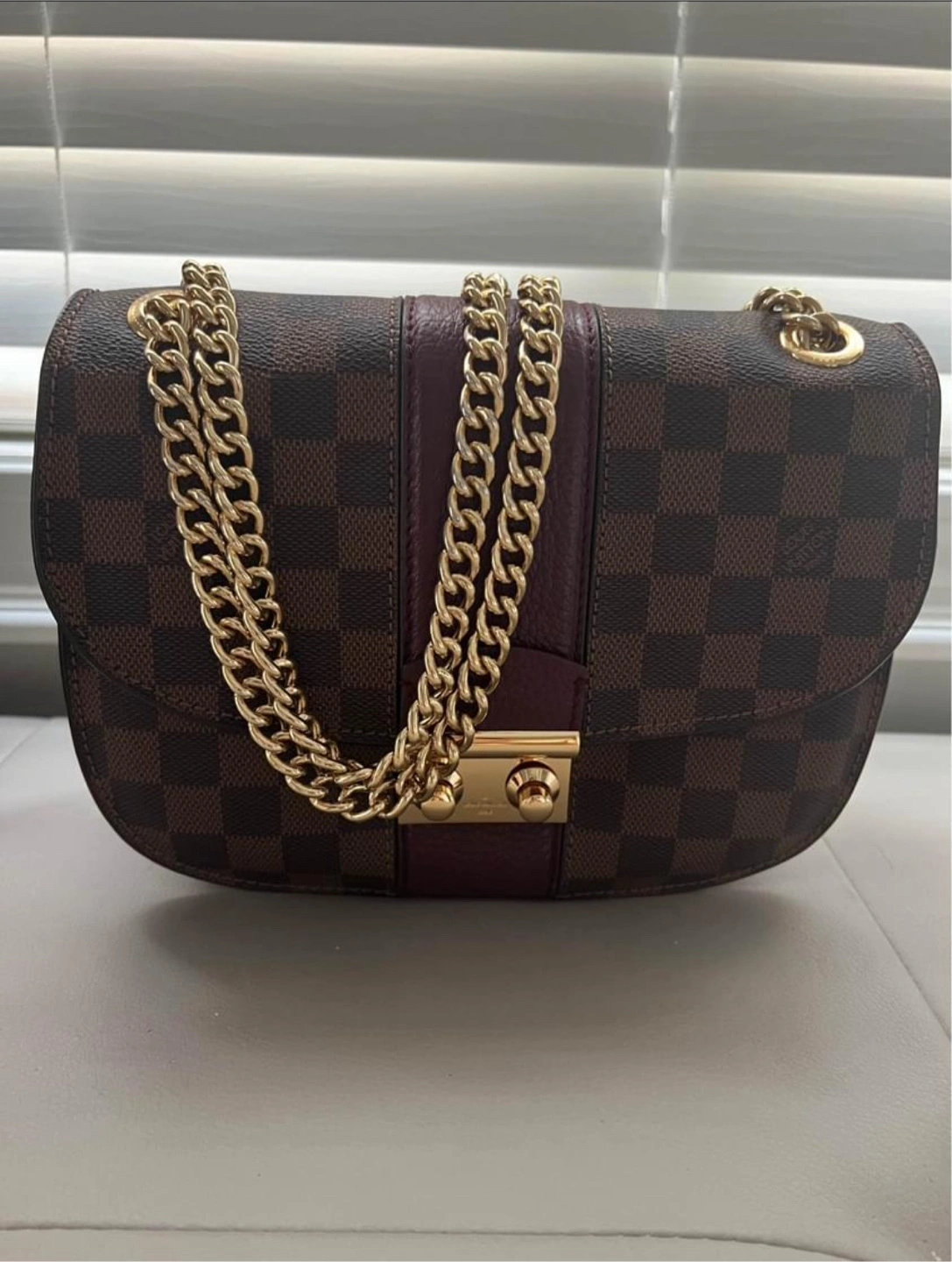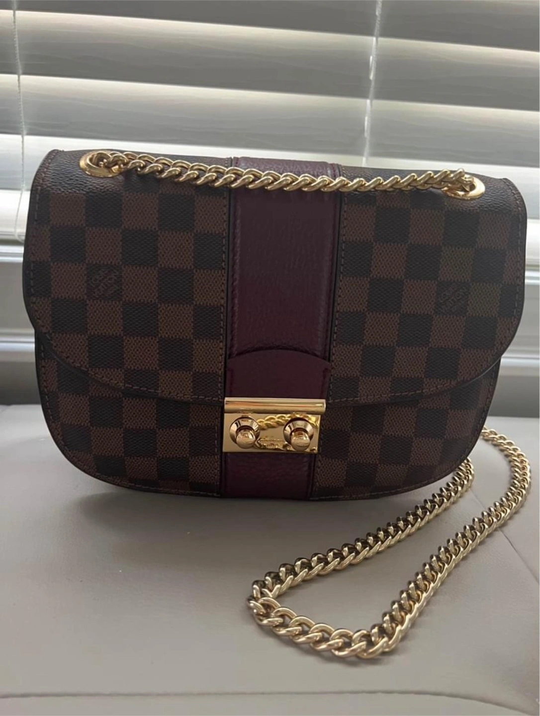 Women’s canvas and leather chain bag Damier print
