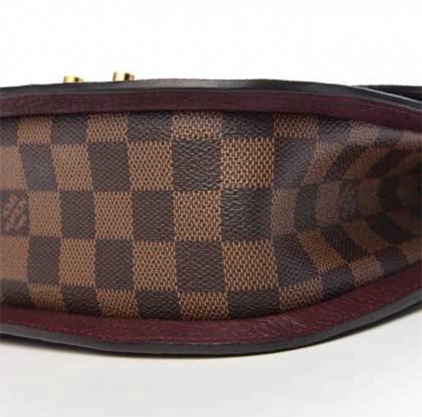 The Wight LV bag round curvy shape in Damien Ebene Canvas with a stripe of Leather and signature button lock gold hrw.