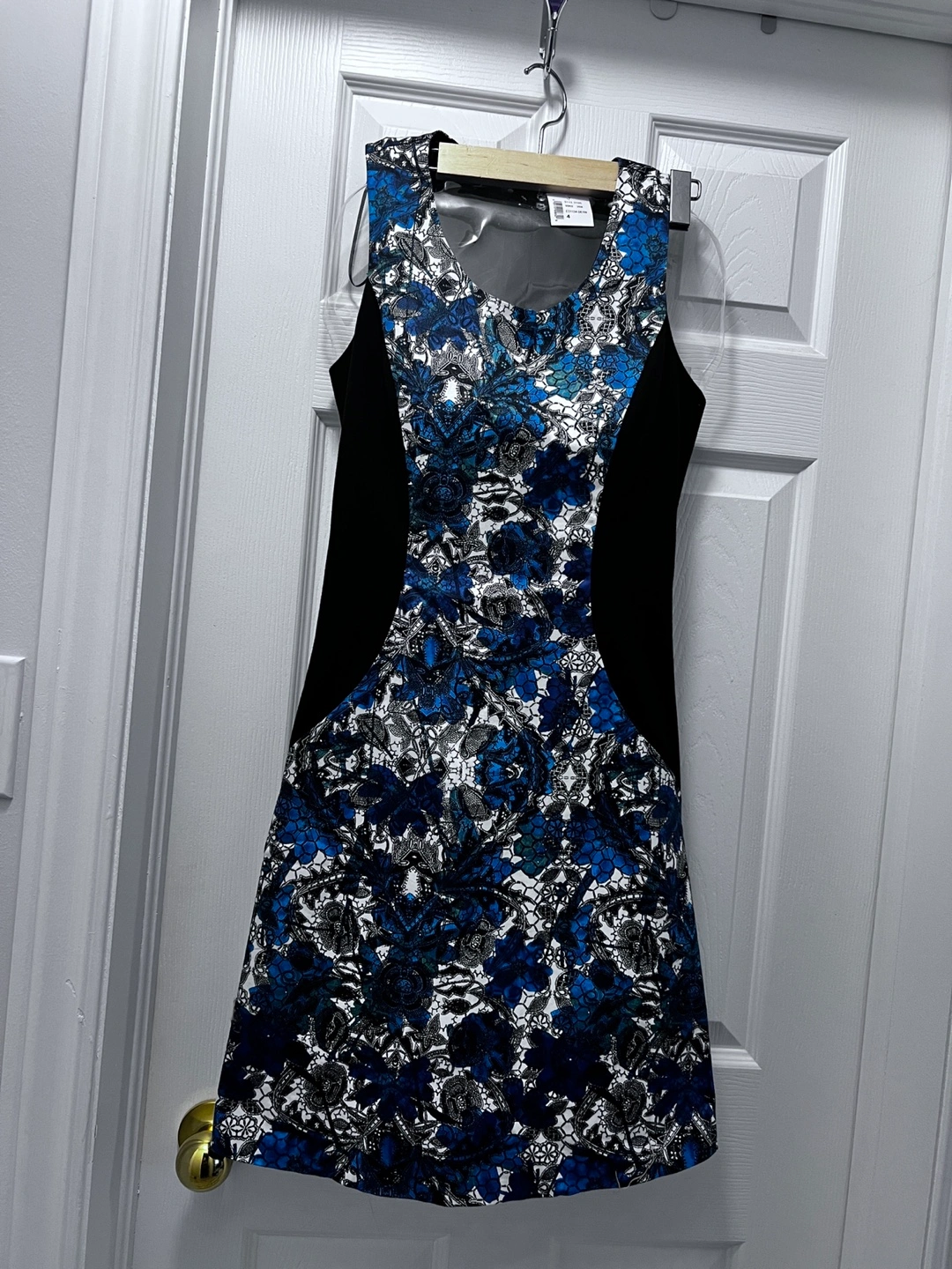 Brand new with tag dress with a unique floral print! It features black side panels that accentuate the design. Perfect for adding a pop of colour to your wardrobe. From Ricki. Size 4 or small. From smoke free home. Cash only. Please check my other posts.