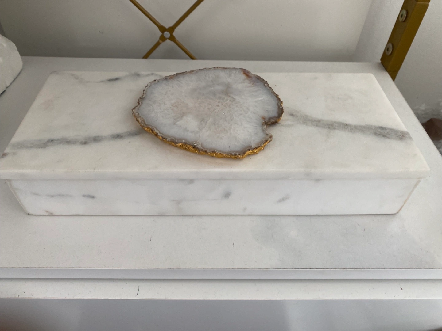63Selling a lovely marble box featuring a unique agate slice on top! It's perfect for adding a touch of elegance to any room. The box is in great condition and ready for a new home! 2 avalable $40 each