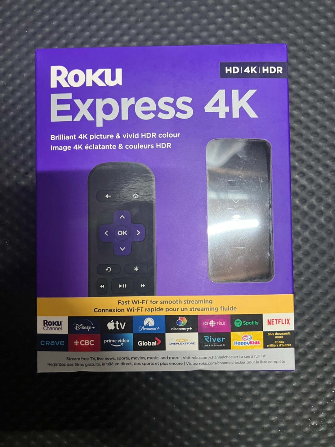 Selling a Roku Express 4K, offering brilliant 4K picture and vivid HDR colour! It comes with everything you need for an easy setup, including: