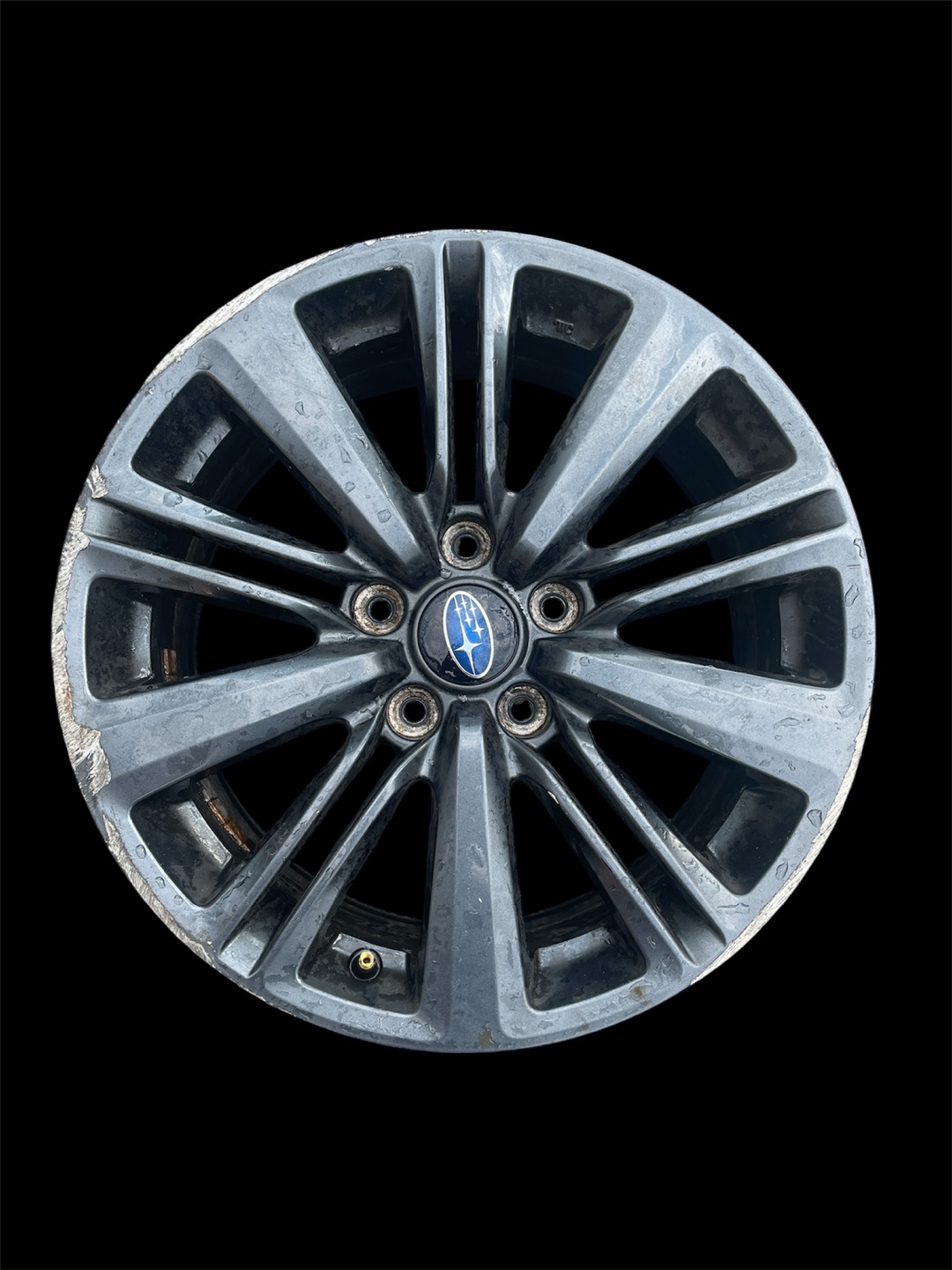 Selling a used Subaru alloy wheel. It has some signs of wear and tear, as shown in the photos.
