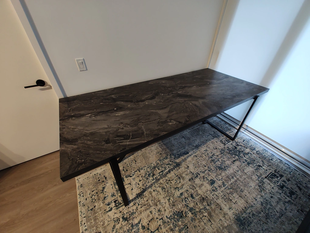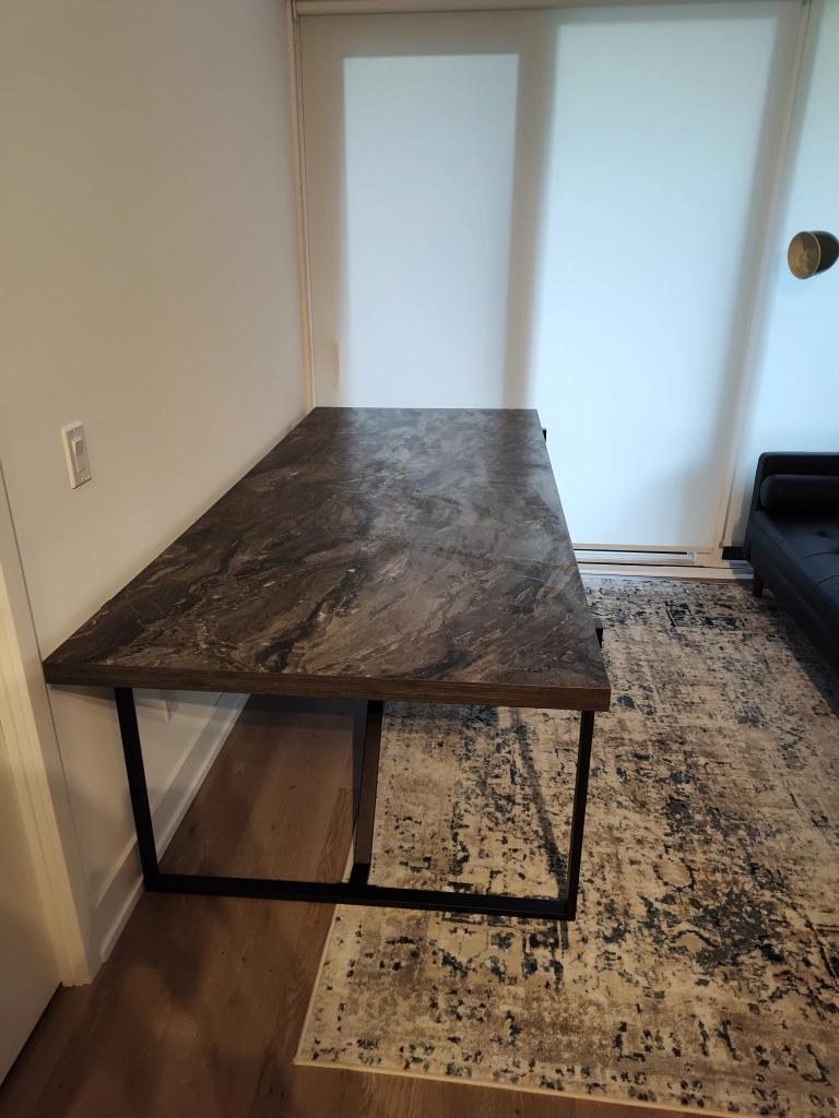 Selling a stylish desk with a marble pattern top and sturdy black metal legs