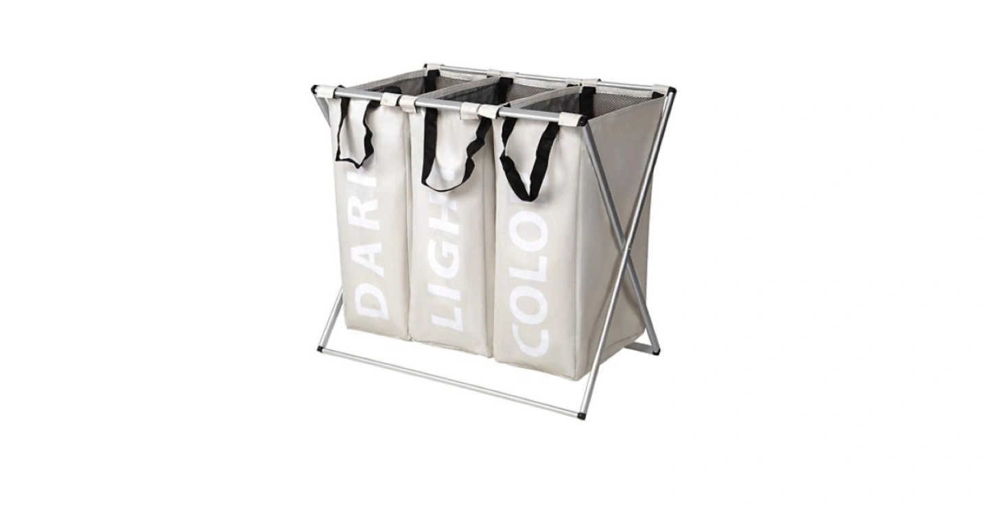 3 Section Foldable Laundry Hamper/ Laundry Basket, 90L X-frame laundry washing sorter