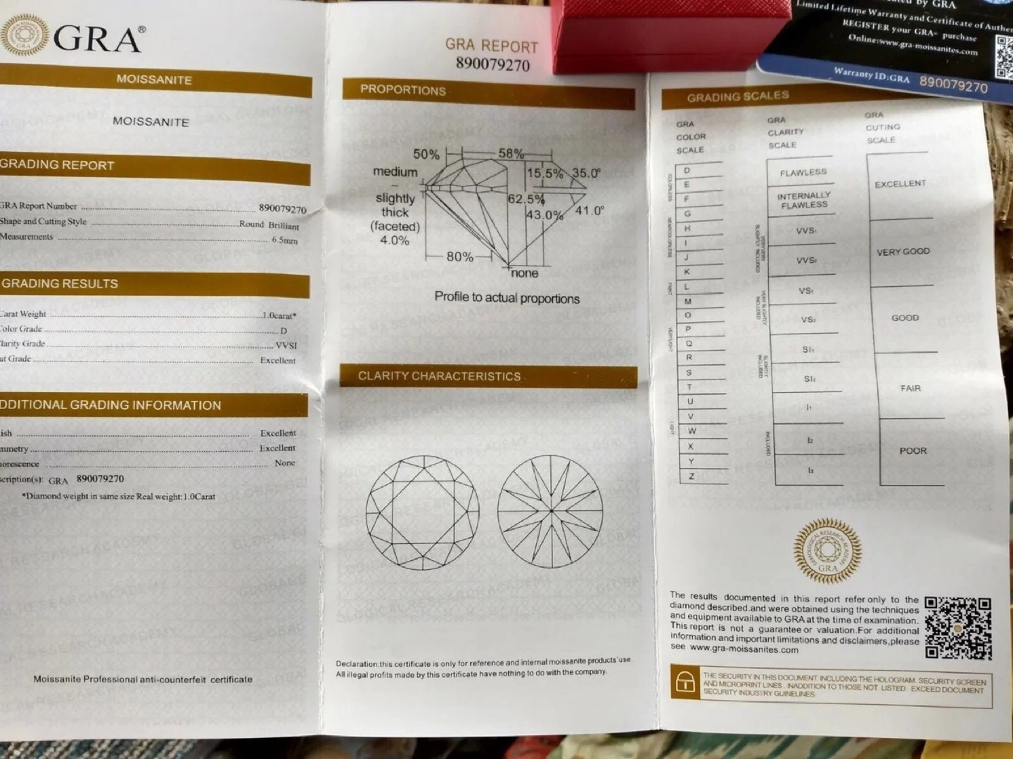Selling a beautiful moissanite ring! The grading report indicates it's a 1.0 carat diamond with a D colour grade and VVS1 clarity grade, ensuring a brilliant sparkle. The ring is in excellent condition and comes with its original box.