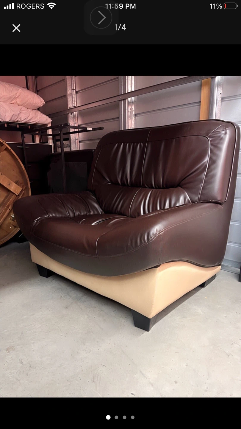 Comfortable Custom Two-Tone Leather contemporary oversized sofa/ accent chair in excellent condition. Perfect for adding a touch of cozy to any room! Light weight easy to move, kept in storage (no pet no smells or use) Pickup in mayland heights/ Barlow
