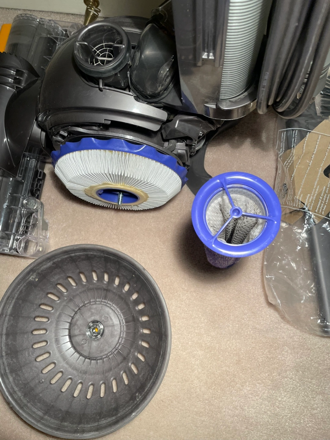 Unit has been tested and is fully functional. Moderate scuffs on unit from customer contact. Filters have moderate use but are in good condition. Extension hose cover on handle has a minor chip. This broken plastic section is cosmetic only and has no functional impact. OEM box included.
